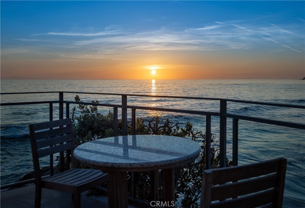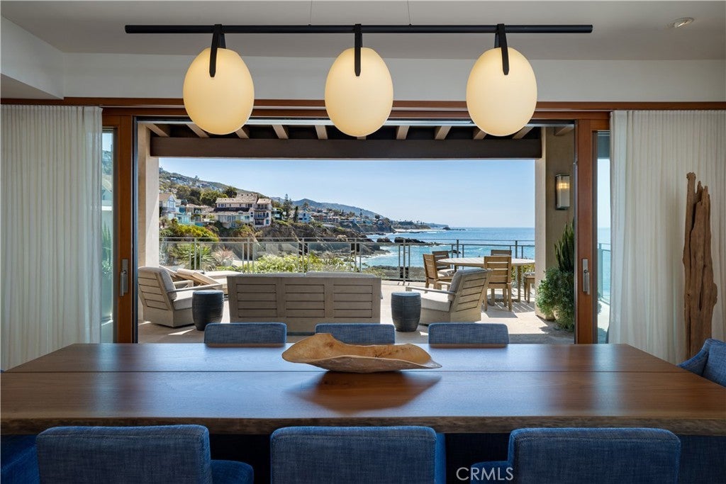 Set in what is arguably the most scenic oceanfront location in Laguna Beach, this iconic residence is set atop the landmark outcropping known as the famed Arch Rock. This private peninsula, reached only via a gated private drive, affords a singular setting with unobstructed 270 degree views of the crashing surf, coves, sunsets and nearly one hundred miles of coastline. The view found here is simply without equal. The extraordinary home created on here is an appropriate complement to the even more extraordinary site. Its tasteful contemporary design was reimagined and rebuilt in recent years with finest materials and is presented in flawless condition. Enveloped in floor-to-ceiling glass walls, every main room has a view up and down the coast. A central great room opens to a protected courtyard terrace suspended above the water (one of seven), and adjoins the entertaining kitchen and formal dining room. Upstairs, the full-floor master suite seemingly floats above the ocean and opens to an extraordinary private view terrace. Two other guest suites (one as a guest house) complete the main areas of the home. All of one’s senses come alive when in residence, as one can experience the varied scents of ocean’s salt spray, the golden rays of the afternoon sun, and the alluring and hypnotic sounds of waves crashing on the shore. One can easily imagine a relaxed life here, surrounded by friends and family, enjoying the ocean throughout the year. A private stair that descends to the coves below provides immediate access to miles of pristine coastline. This location in the highly desirable neighborhood of Woods Cove allows for leisurely walks to morning coffee, while also affording easy pedestrian access to the myriad shops and restaurants of this beloved coastal village.