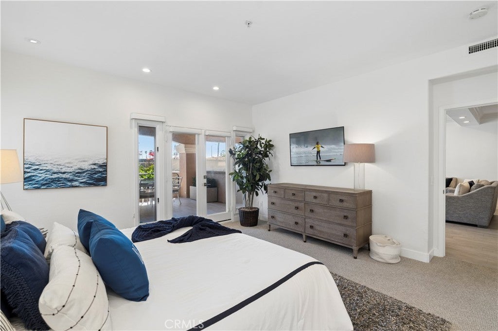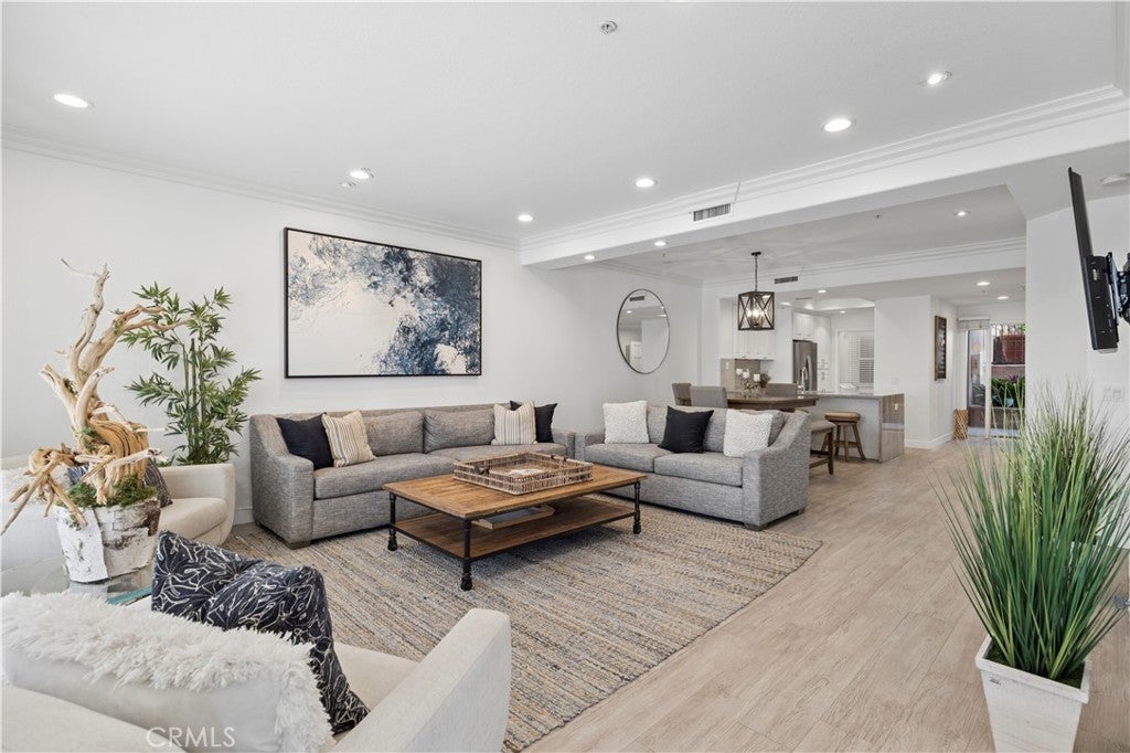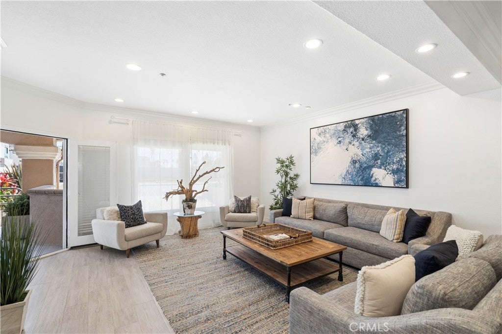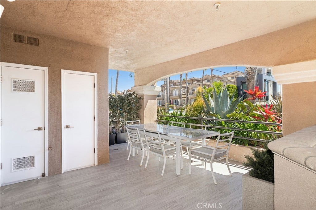 Introducing a refined coastal residence ideally positioned just across from the sand, this fully furnished two-bedroom condominium offers an exceptional Huntington Beach lifestyle from its desirable first-floor setting. Thoughtfully designed with an emphasis on light and scale, the open-concept living space is framed by soaring ceilings and expansive windows that invite in the natural beauty of the coastline. The living room is anchored by a striking stacked stone fireplace and complemented by a custom dry bar. Adjacent, the dining area flows seamlessly into a well-appointed kitchen featuring a waterfall-edge breakfast bar, stainless steel appliances, and sleek contemporary finishes. The primary suite offers a serene escape, complete with a private balcony, a plush king-sized bed, and a spa-inspired bath featuring an oversized walk-in shower, a separate soaking tub, and a dual-sink vanity with generous storage. A spacious secondary bedroom, full guest bath, and dedicated laundry room provide both comfort and convenience. Multiple private outdoor spaces invite in the ocean breeze, while the community spa and lounge offer an additional layer of relaxation. Moments from the iconic Huntington Beach Pier and just a short walk to Downtown Main Street, this exceptional offering places world-class dining, boutique shopping, and vibrant coastal energy right at your doorstep, all set along the shoreline of renowned Surf City.