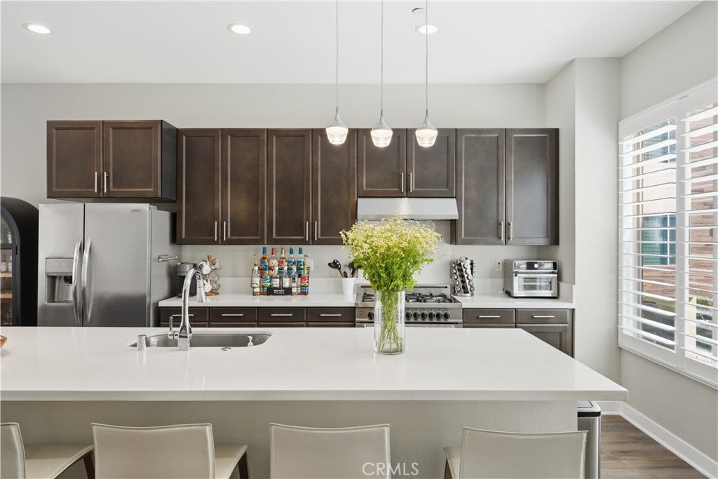Welcome to Ebb Tide - Newport Beach living with a sunny, modern twist! Sitting on a cornet lot this detached home is pure coastal-chic, with 1,843 sq ft of bright, breezy living space, 4 bedrooms and 3.5 baths plenty of room for family, friends, or a spontaneous beach sleepover. One guest-ready bedroom on the first floor opens to the backyard through a sliding door, perfect for morning coffee or late-night stargazing. Head upstairs to an open-plan second floor where the living and dining areas flow together - ideal for laid-back hangs or lively dinner parties. The kitchen is a showstopper: a huge central island, stainless-steel Bertazzoni appliances, and sleek quartz countertops make cooking and entertaining a delight. Warm, wood-look floors and sun-drenched rooms keep the vibe modern and inviting. Retreat to the third level with primary suite, spa inspired en-suite, and walk-in closet. Two additional bedrooms complete this level with an additional full bathroom, and laundry area. The pièce de résistance? A spacious rooftop deck with panoramic mountain and city-light views - sit back, feel the ocean breeze, and soak in the sunset. Location-wise, you're a mile from world-class beaches, hip restaurants, and buzzing nightlife, with Fashion Island, South Coast Plaza, and John Wayne Airport just a short drive away. Add in the fabulous Ebb Tide community amenities, and this place is the perfect launchpad for everything coastal Newport has to offer.