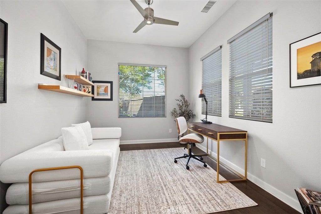 Live your best life in this beautiful light and bright single level home! This two bedroom and two bath plus den (could turn this to a 3rd bedroom) is located in the exclusive gated community of Gavilan-Sendero in Rancho Mission Viejo ( 55+ community). This beautiful home features an open floor plan, chef’s kitchen with top of the line appliances, large kitchen island, exquisite granite counters, wood floors, luxurious primary suite, walk in closet and a large inside laundry room are just a few of the upgrades. Home is situated on a large corner parcel with views of the hills, picturesque garden and an ever so fun putting green. Close to “The Hacienda”, this gated clubhouse offers spaces for serious fun and relaxation. HOA amenities include a collection of indoor/outdoor community facilities set around scenic courtyards with panoramic hillside views, sparkling pools, fitness center, pickleball, and bocce play.