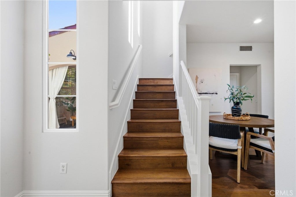 Bright, spacious, and perfectly situated, this home in highly desired Chantory at Turtle Ridge welcomes you with elegant features and resort-style living in a secure gated community. The beautifully appointed interior features two spacious primary suites upstairs, providing luxurious comfort and private full baths with stone finishes. The home features upgraded engineered wood flooring that flows naturally through open living and dining areas, designed for both entertaining and relaxed everyday living. The light, all-white kitchen features upgraded Calacatta Oro marble countertops and a butcher-block island, with newer kitchen appliances. Move outside to the secluded patio for effortless indoor-outdoor living, featuring updated landscaping, exterior lighting, and a fig tree. The outdoor California room is a highlight of this property and offers another amazing place to relax. Additional highlights include a convenient downstairs powder bath, outdoor loggia, and attached one car garage. Recent updates include a full re-pipe and fresh paint in 2024, custom closet organizers and lighting, epoxy garage floors, security system, and elegant touches like a CB2 chandelier in the entryway and upgraded kitchen hardware. Amenities of this welcoming, pet-friendly community include cabana-lined pools and spa, a clubhouse, children's wading pool, and scenic walking trails, all only minutes from iconic beaches, top-rated schools, world-class dining and shopping, and John Wayne Airport. Sophisticated lifestyle in an unbeatable location.