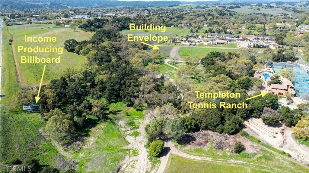 One of the most unique and scenic properties, in one of the best locations on the Central Coast. Nearly 24 acres of stunning views, scenic trails, and diverse topography surround you. The 6,000-square-foot building envelope is ideally tucked away on the property—an exceptional flat site to build your dream home. Per communication with the county, the lot may accommodate up to three additional ADUs outside of the building envelope, as well as AG building. Utilities are available at the street, with an active water meter and water line locations throughout the property. The property runs adjacent to Templeton Tennis Ranch, and a billboard on-site generates passive income, adding to the property's value. This is a rare opportunity to own a truly special piece of land. Don’t miss your chance to live in one of the most coveted and prestigious areas of the Central Coast—West Templeton.