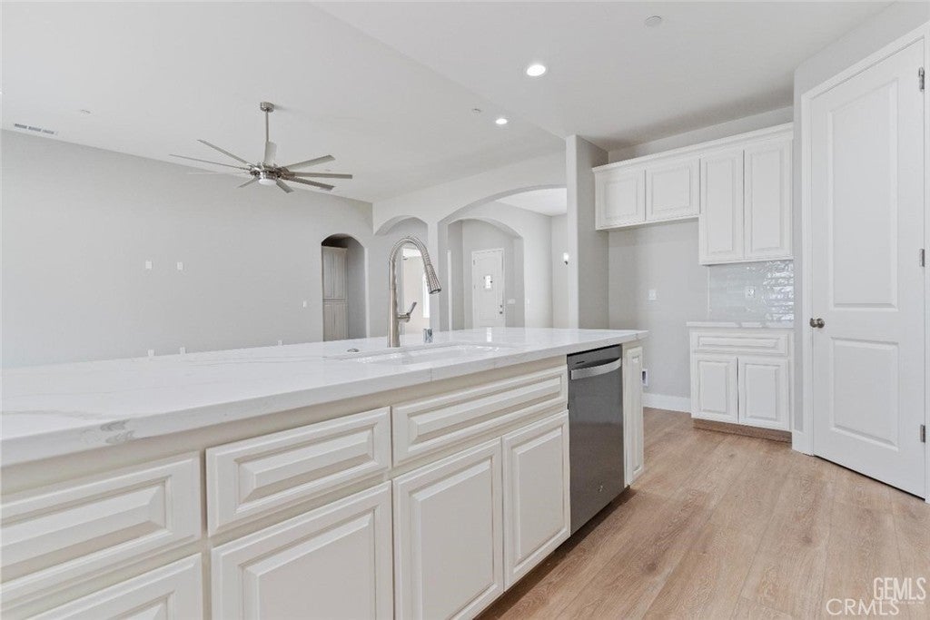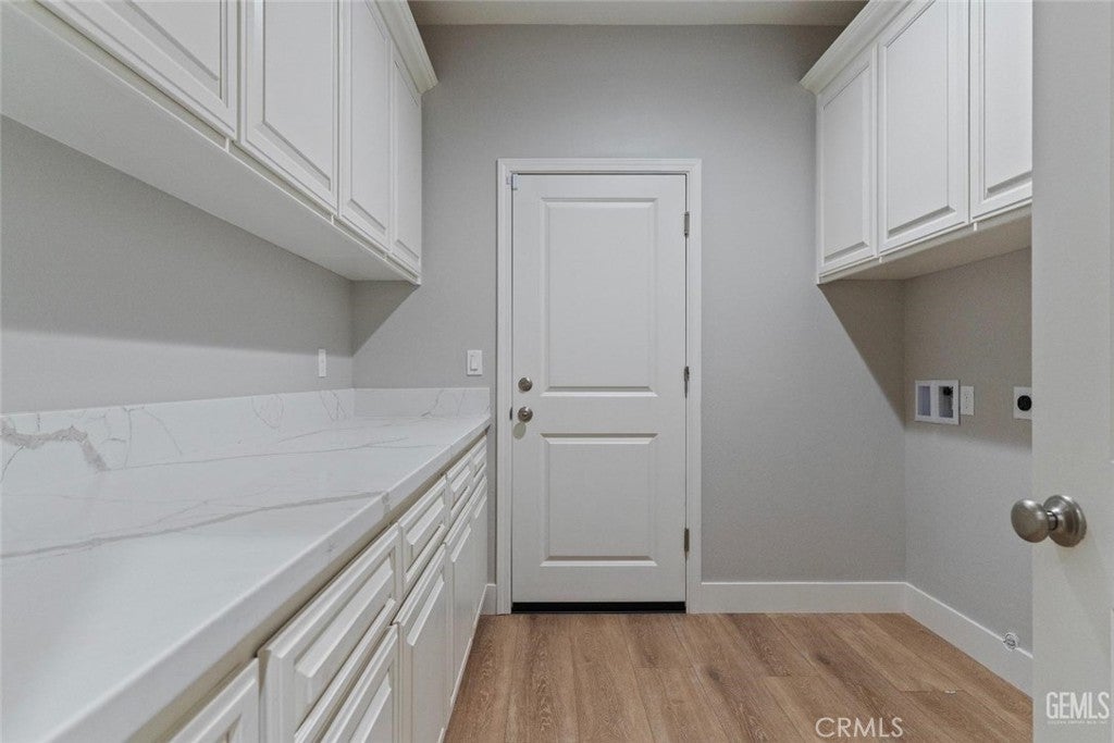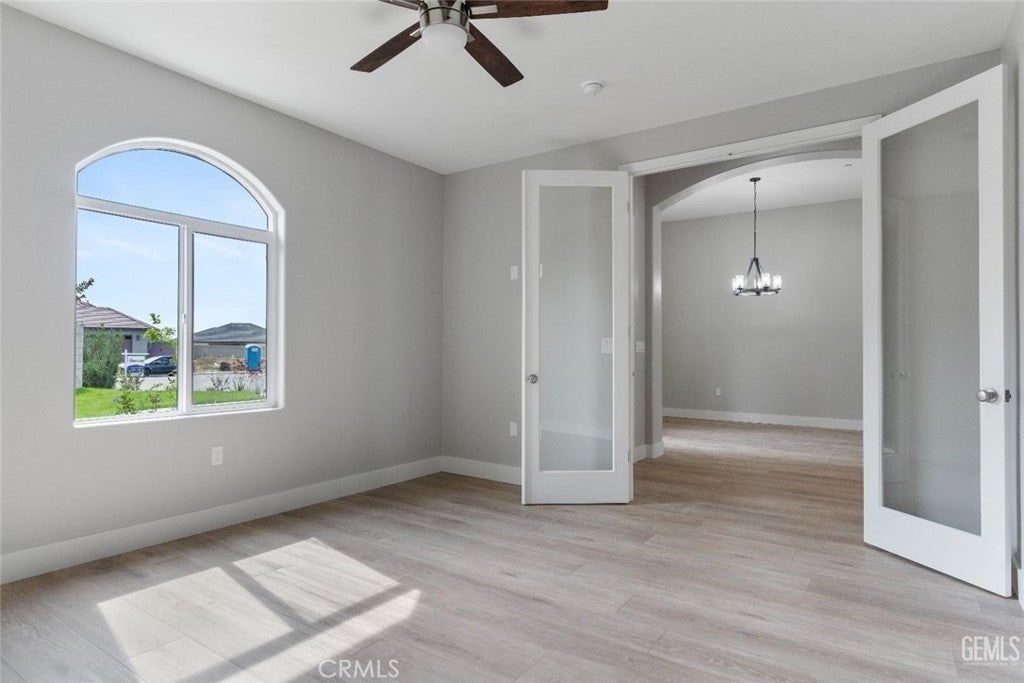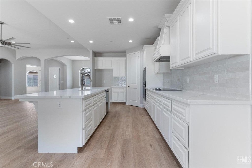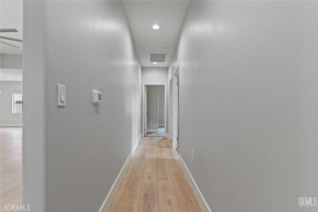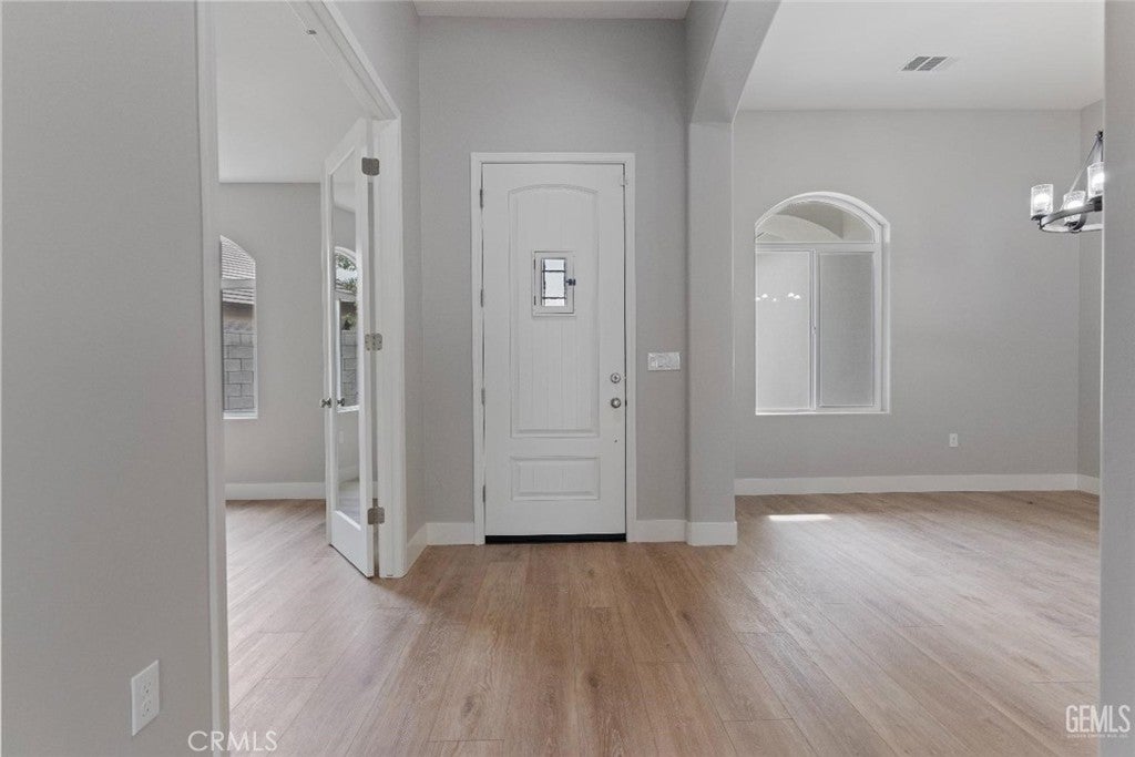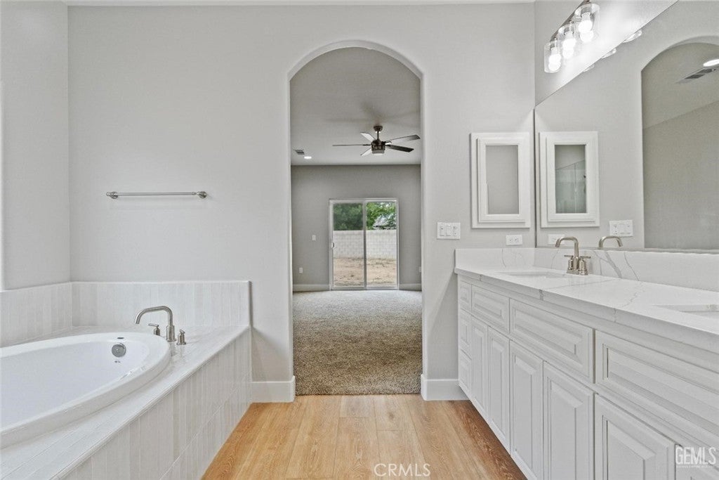 Spectacular New Construction by Russell Brucker Construction located in a cul-de-sac in NW Bakersfield. Featuring approx. 2,576 sq ft on an 11,325 sq ft lot, this split wing design offers 3 bedrooms plus office, 3 bathrooms, and a spacious utility room. Enjoy LVT flooring in living areas, walkways, and kitchen. The 3-car finished garage includes baseboards, and along with gated RV parking with wrought iron gate. Exterior upgrades include acrylic stucco, tile roof, stucco eaves, cinder block walls, and owned solar. The chef's kitchen boasts custom white cabinetry with soft-close maple interiors, quartz countertops, stainless appliances, a walk-in pantry, and farmhouse sink overlooking the great room with oversized 3-panel slider to the patio. The primary suite offers patio access, a luxurious soaking tub, glass-enclosed tile shower, and large walk-in closet. This property is ready for a quick escrow!