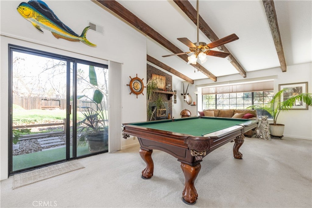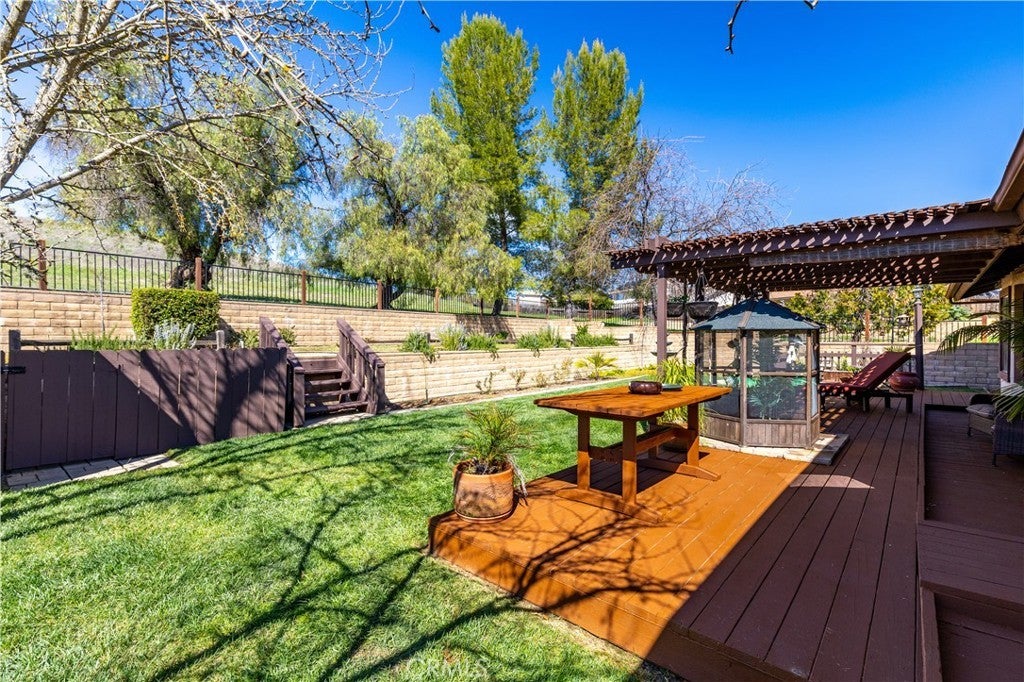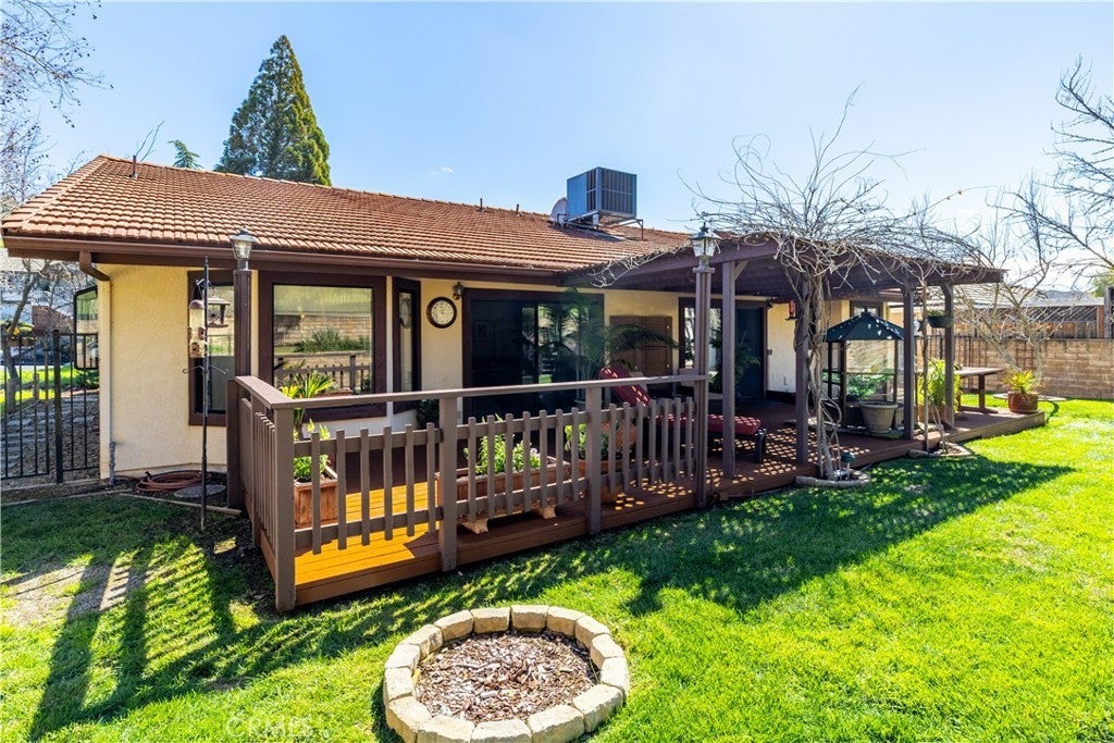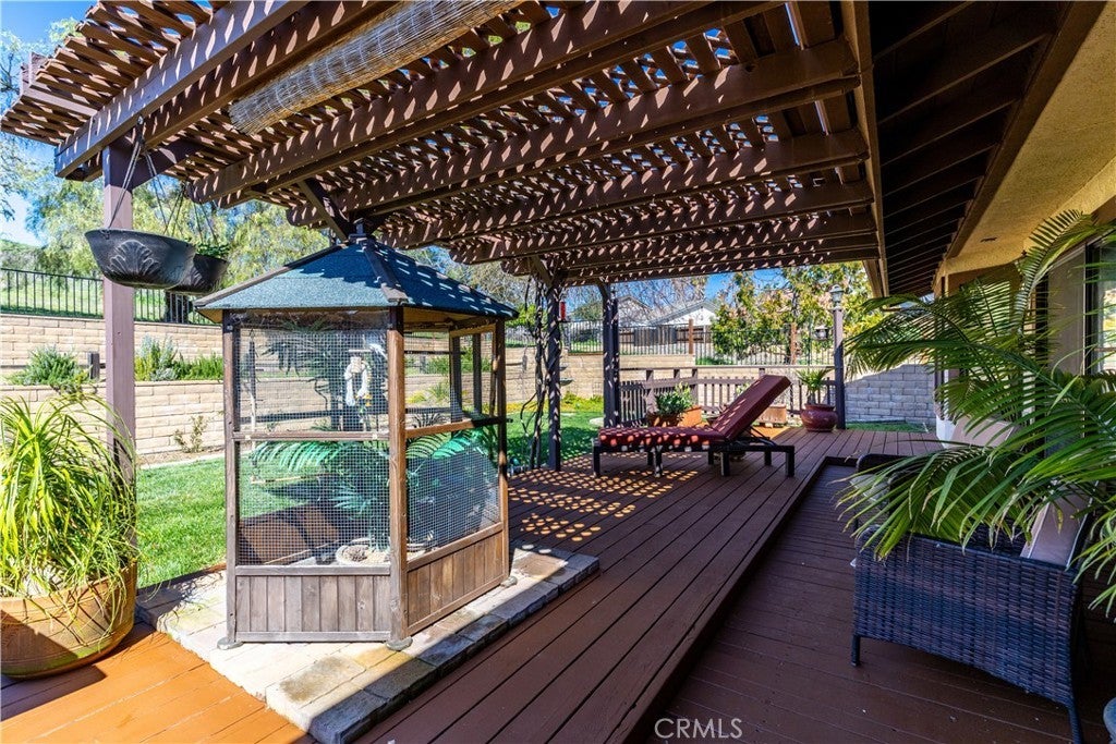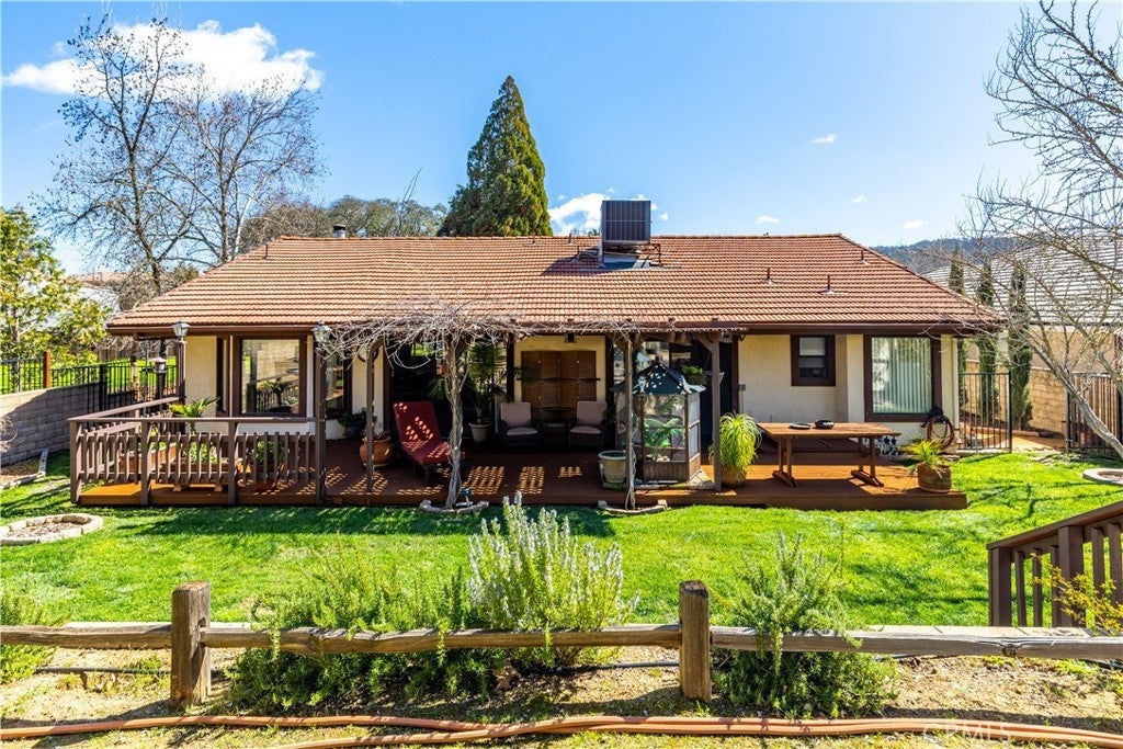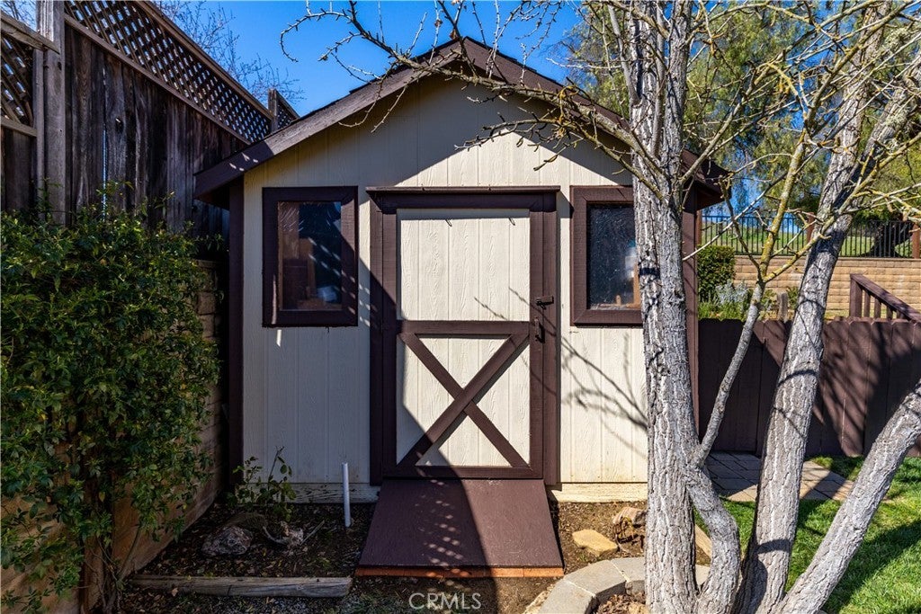Located in the desirable and well-established neighborhood of Heritage Ranch, this home offers quality construction with durable 2x6 framing. The open and airy floor plan features vaulted ceilings, ceiling fans, and a thoughtfully designed kitchen with pullout shelves — perfect for both everyday living and entertaining. Convenient indoor laundry and ample storage can be found throughout the home. The spacious primary suite includes a walk-in closet, while additional upgrades include a Navien tankless water heater, newer A/C, wrought iron fencing, a storage shed, an aviary with parakeets, and a charming water fountain. The interior was freshly painted approximately three years ago, and the property is bordered by greenbelt on two sides, offering enhanced privacy and beautiful natural views from the recently repainted covered rear deck. A standout feature is the oversized three-car garage, measuring approximately 29 feet deep and 28 feet wide — ideal for vehicles, hobbies, or extra storage. Residents enjoy access to premium amenities at Heritage Ranch, including swimming pools, tennis and pickleball courts, a dog park, recreational barn, private boat launch, and scenic riding trails. Daily conveniences such as a nearby grocery store, dining options, gas station, and elementary school further enhance the community’s appeal. There is also an ASSUMABLE LOAN with a 2.25% interest rate. This is a unique property you won’t want to miss!
