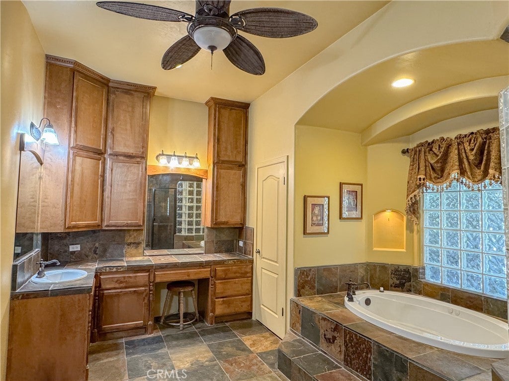Seven Oaks West beauty! This 4-bedroom, 2.5-bath home with a 3-car garage welcomes you with a private entry and glass doors that lead into a spacious layout. Enjoy a formal dining room, a large great room with fireplace, and an open kitchen featuring an island with vegetable sink, pantry, custom cabinetry, and stainless-steel appliances. The split-wing design offers roomy bedrooms and a large indoor laundry with sink. The primary suite boasts two walk-in closets, two separate sinks, a jetted tub, separate walk-in shower, and direct access to the backyard. Outside, relax under the oversized covered patio surrounded by mature landscaping perfect for entertaining or quiet​​‌​​​​‌​​‌‌​​‌​​​‌‌​​​​​​‌‌​‌‌​​‌​​​‌‌​ evenings.