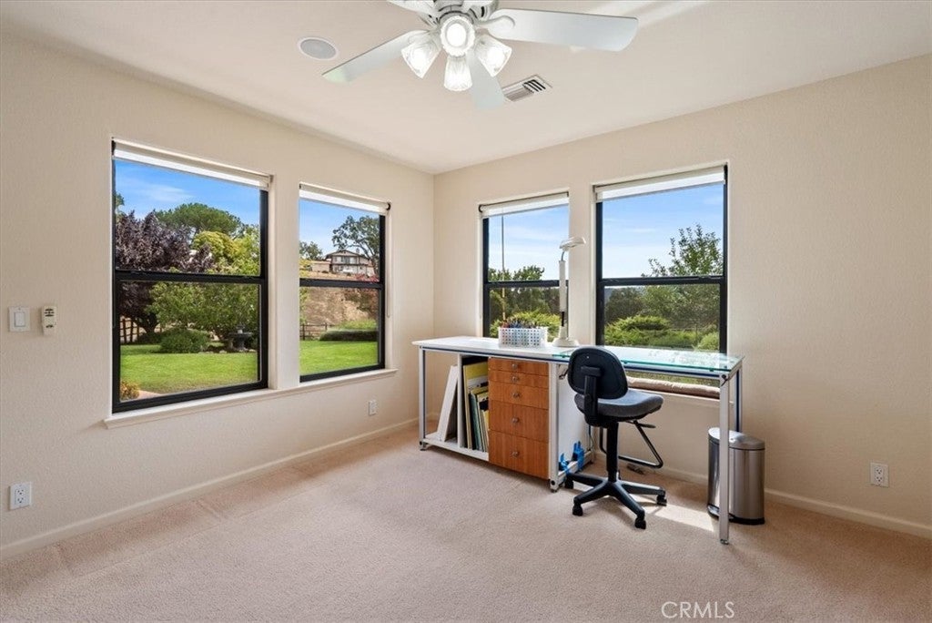 Welcome to 2955 San Fernando Rd, a custom single-level home on 3.8 fully fenced acres in West Atascadero. Enjoy sweeping hill, valley, and city-light views from the 2,800+ sq ft home featuring 4 bedrooms, 2.5 baths, and a 3-car garage. The spacious living and family rooms share a double-sided fireplace, perfect for gathering together. The chef’s kitchen offers granite counters, farm sink, dual ovens, and island cooktop. After a long day, retreat to the master suite with fireplace, walk-in closet, soaking tub, and tiled shower. Step outside and enjoy an expansive patio with surround sound and landscaped yards which provide the ideal setting for entertaining. Blending the charm of country living with the ease of modern comforts, upgrades such as a tankless water heater with circulation system, whole-house water softener, and central air make this home truly special.