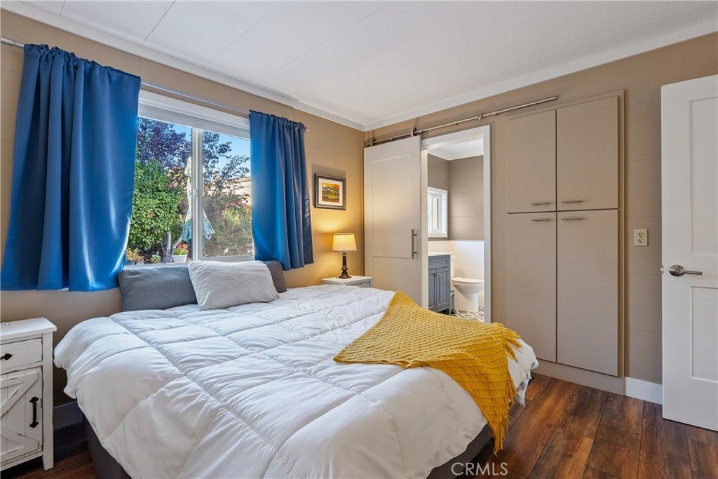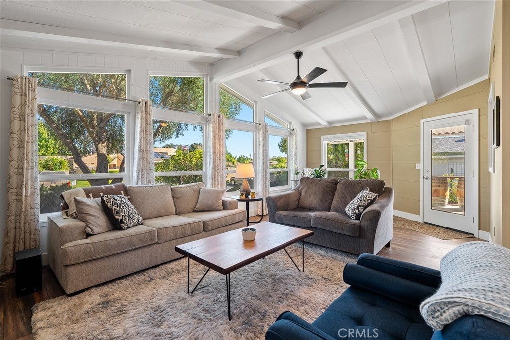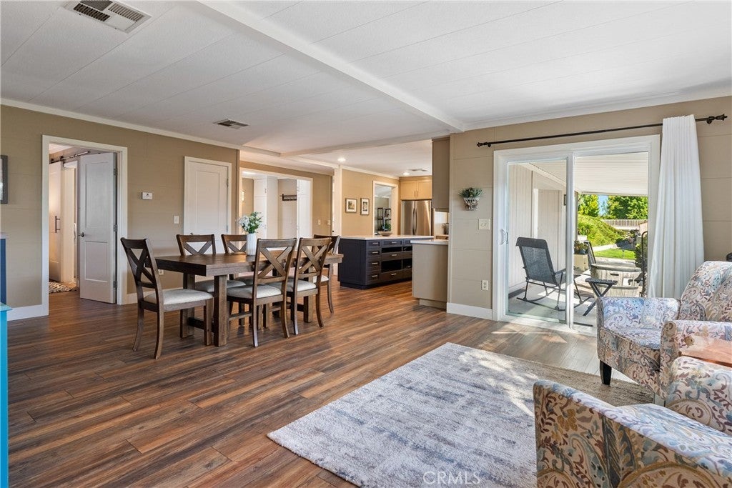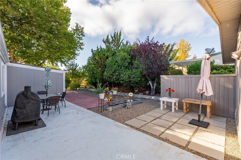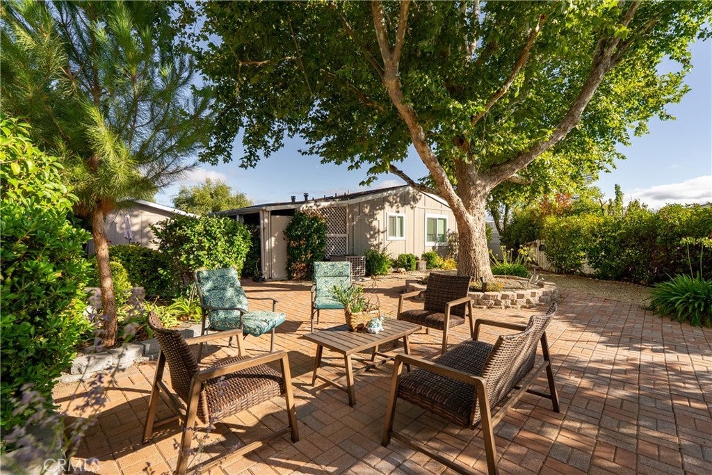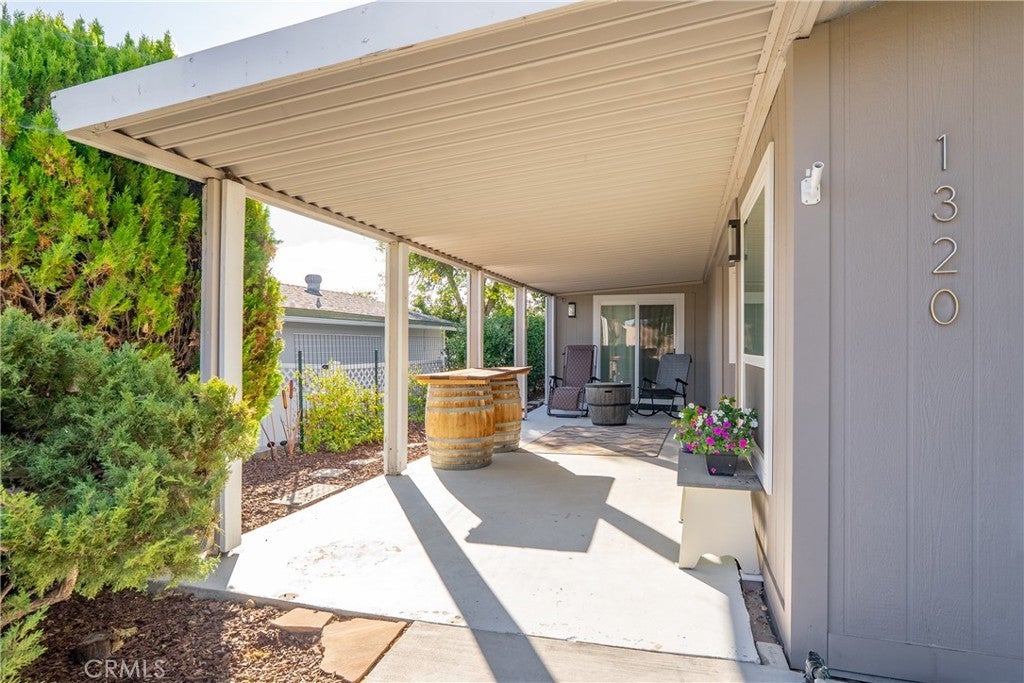 Welcome to 1320 Teal Avenue, a stunning and sophisticated home located in the Quail Run community of Paso Robles — a 55+ neighborhood! Set on a spacious 7,000+/- sqft lot, this beautifully updated manufactured home features 2 bedrooms, 2 bathrooms, and 1,856+/- sqft of thoughtfully designed living space. Step inside the family room filled with natural light from a multitude of windows and soaring cathedral ceilings accented by exposed wood beams. The layout flows into an informal dining area, and a well-appointed kitchen. The kitchen boasts soft-close cabinetry, designer solid-surface countertops, a walk-in pantry, and a stainless-steel appliance package for those who love to cook and entertain. Overlooking the kitchen is a welcoming living room with a sliding glass door that opens to the front porch for relaxing and enjoying your morning coffee. A charming foyer area leads to the backyard, while the home’s layout offers two private primary suites, each with its own bathroom. The indoor laundry room includes direct access to one of the bedroom suite’s walk-in closets for added convenience. Throughout the home, custom-milled siding and trim lend a touch of craftsmanship and sophistication. The outdoor spaces are equally impressive. The expansive lot features a brick patio shaded by a mature elm tree, garden beds, and a serene atmosphere that creates a retreat-like setting. The side yard includes a shed equipped with cabinetry and a sink for additional storage or workspace. Completing this beautiful property is a detached 2-car garage. Residents of Quail Run may enjoy access to a host of amenities just across the street, including a clubhouse, pool, spa, tennis courts, shuffleboard, and horseshoe pits, plus designated RV parking for those in need. With modern upgrades, elegant design, and a vibrant community setting, 1320 Teal Avenue embraces the charm of Paso Robles Living.