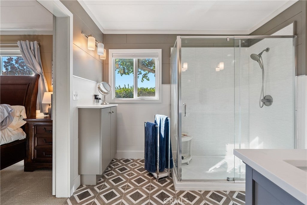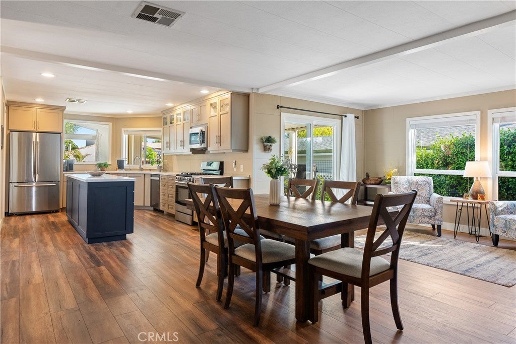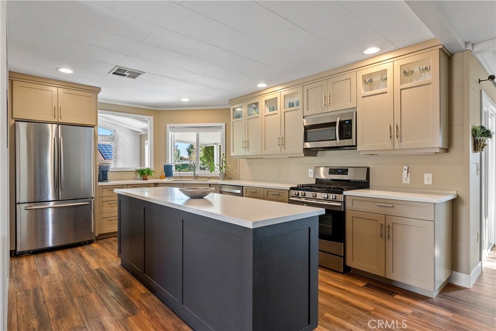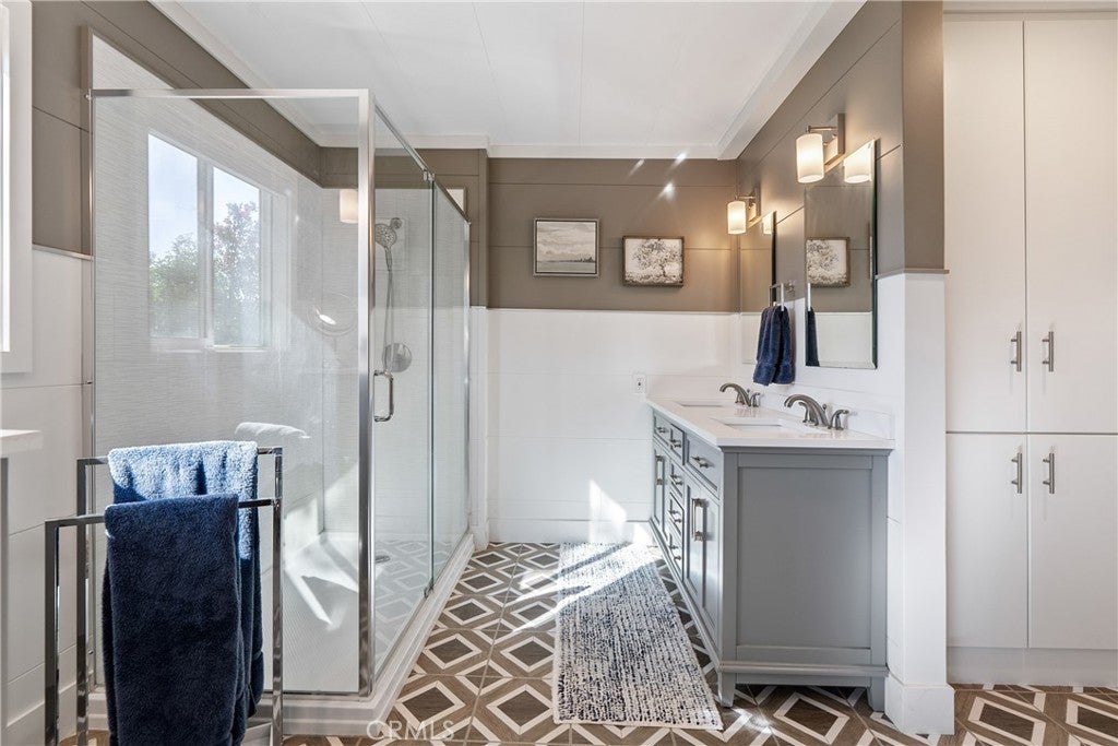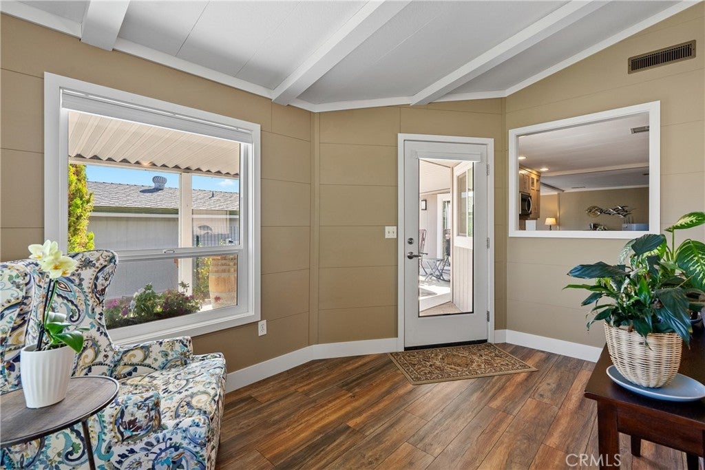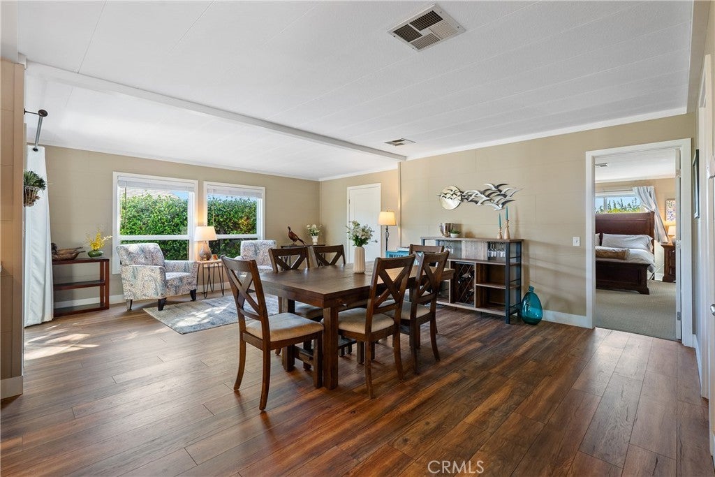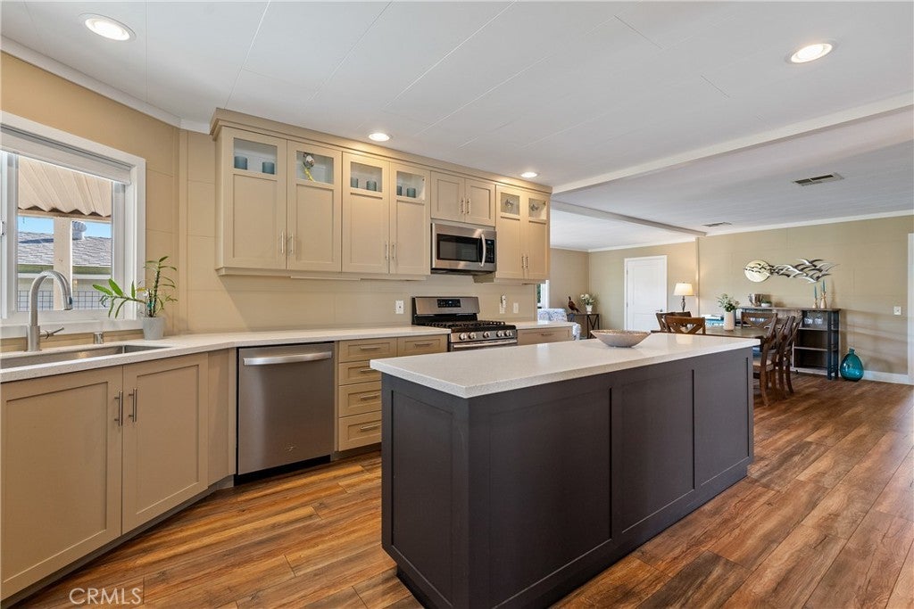 Welcome to 1320 Teal Avenue, a stunning and sophisticated home located in the Quail Run community of Paso Robles — a 55+ neighborhood! Set on a spacious 7,000+/- sqft lot, this beautifully updated manufactured home features 2 bedrooms, 2 bathrooms, and 1,856+/- sqft of thoughtfully designed living space. Step inside the family room filled with natural light from a multitude of windows and soaring cathedral ceilings accented by exposed wood beams. The layout flows into an informal dining area, and a well-appointed kitchen. The kitchen boasts soft-close cabinetry, designer solid-surface countertops, a walk-in pantry, and a stainless-steel appliance package for those who love to cook and entertain. Overlooking the kitchen is a welcoming living room with a sliding glass door that opens to the front porch for relaxing and enjoying your morning coffee. A charming foyer area leads to the backyard, while the home’s layout offers two private primary suites, each with its own bathroom. The indoor laundry room includes direct access to one of the bedroom suite’s walk-in closets for added convenience. Throughout the home, custom-milled siding and trim lend a touch of craftsmanship and sophistication. The outdoor spaces are equally impressive. The expansive lot features a brick patio shaded by a mature elm tree, garden beds, and a serene atmosphere that creates a retreat-like setting. The side yard includes a shed equipped with cabinetry and a sink for additional storage or workspace. Completing this beautiful property is a detached 2-car garage. Residents of Quail Run may enjoy access to a host of amenities just across the street, including a clubhouse, pool, spa, tennis courts, shuffleboard, and horseshoe pits, plus designated RV parking for those in need. With modern upgrades, elegant design, and a vibrant community setting, 1320 Teal Avenue embraces the charm of Paso Robles Living.