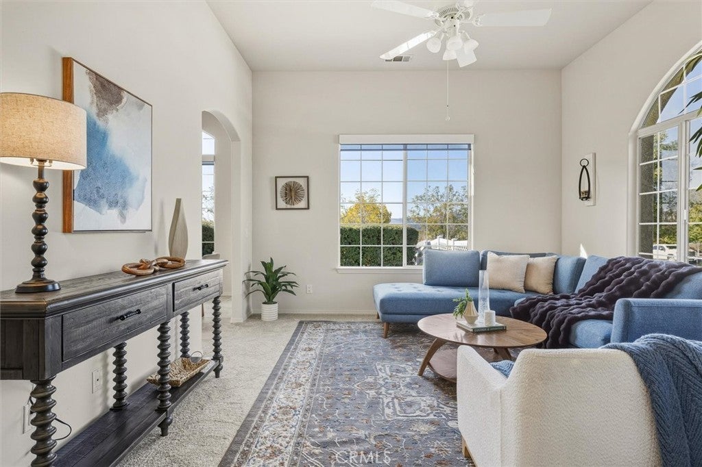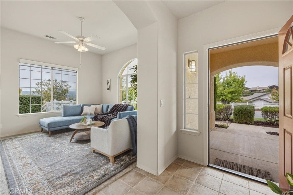 Welcome to the Riverglen Heights tract, this 2001 built home is the The Shenandoah Floor plan offering 3 bedrooms, 2 full bathrooms with 1804 sq ft of living space on an Estate sized 18,000+ sq ft corner lot. Perched atop this location are fabulous views of Paso with mesmerizing sky views and sunsets. This meticulously clean & well-maintained home boasts a functional, single level floor plan with all new interior paint and carpet. The thoughtful layout offers a spacious front living room with lots of natural light. The abundant, open-air kitchen offers a functional island with bar seating, an informal dining area flowing into the family room complete with a cozy fireplace, rear patio slider door access, tile flooring, high ceilings, recessed lighting, and sun-soaked windows. The high ceilings throughout the main living areas offer up a feeling of comfortable open space, ideal for entertaining. The Kitchen boasts granite counters, backsplash, all appliances, and ample Oak cabinetry for all your cooking needs. The Primary Suite includes a large walk-in closet, ensuite bathroom with dual sinks, shower stall, separate soaking tub, private toilet, and slider door to the rear patio. The hall bathroom offers a shower over tub. The covered back patio is prime real estate for relaxing, barbecues, and hosting guests. Home includes dual pane windows, ceiling fan/light fixtures, central forced air heating & air conditioning, alarm system, water softener, 3-car garage, boat or RV Parking, separate laundry room with washer & dryer, utility sink in garage, and solar panels (owned). The manicured lot features a thoughtful design and mature landscaping complete with dual-zone sprinklers, drip irrigation, and some refreshed ground covering throughout. These spacious fenced yards offer plenty of room for pets and kids to roam. Experience the best of Paso living with a super convenient location just minutes to downtown shops, restaurants, entertainment, and Hwy-101.