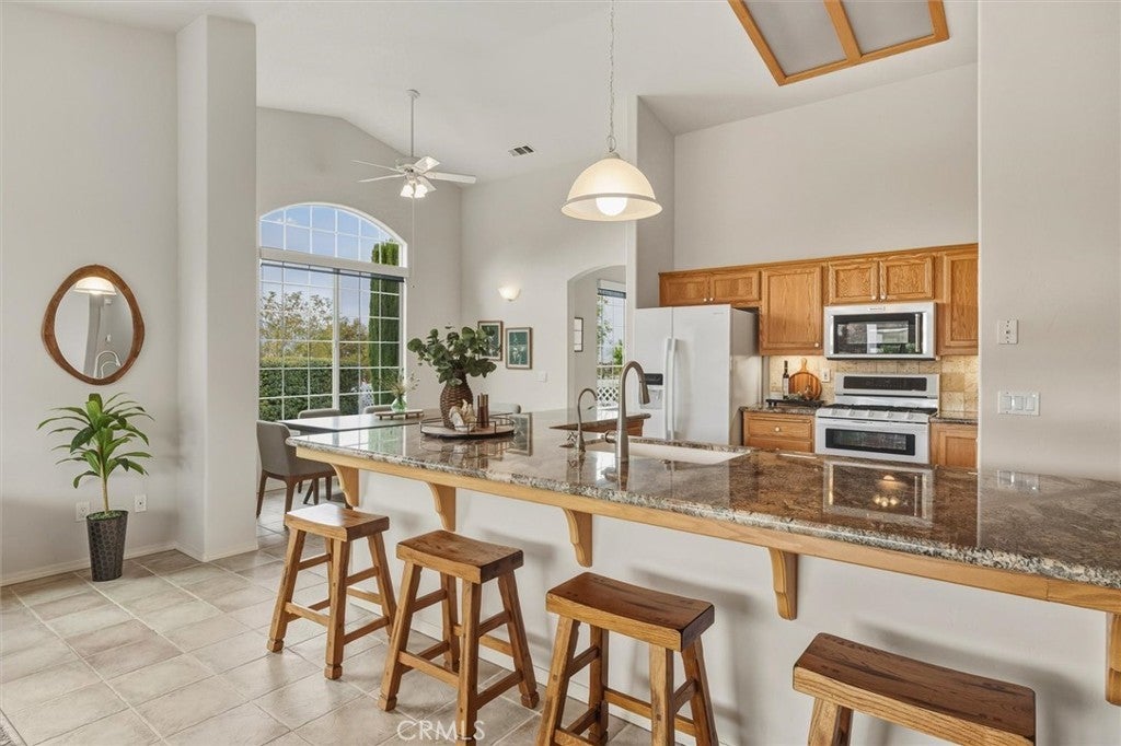 - Interior FeaturesBreakfast Bar, Ceiling Fan(s), Eat-in Kitchen, Granite Counters, High Ceilings, Recessed Lighting, Primary Suite, Walk-In Closet(s)