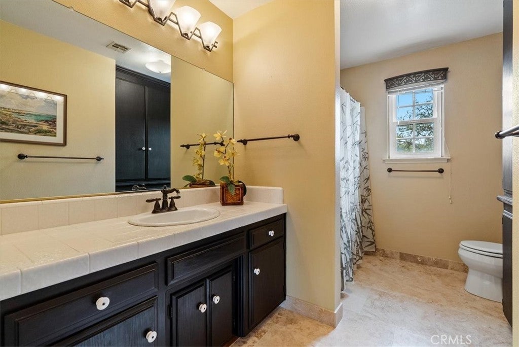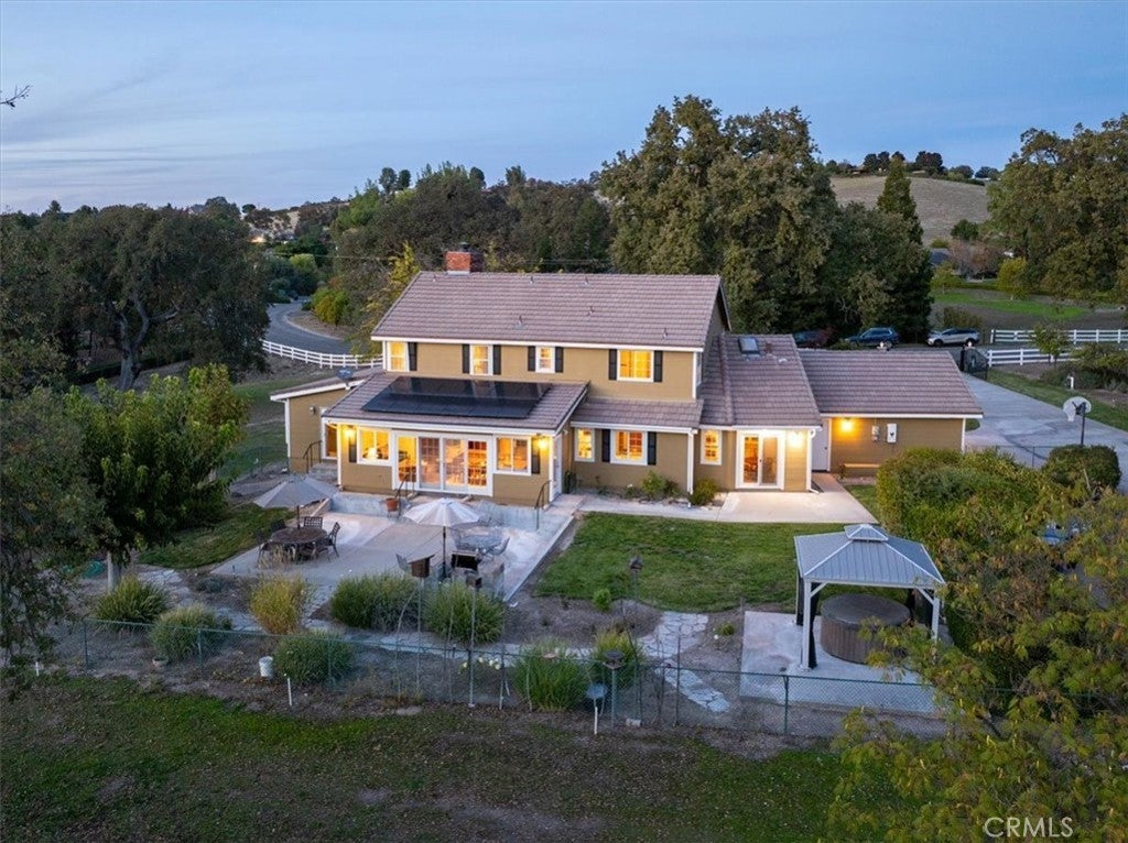 Nestled on over 5 picturesque acres in the desirable Spanish Camp community of Paso Robles, this 3,415± sq ft residence offers exceptional space, privacy, and potential. The home features primary suites on both the main and upper levels, along with two additional bedrooms and a dedicated office—ideal for multi-generational living or flexible work-from-home needs. A charming media/sitting room could be connected to the downstairs primary suite, creating an opportunity for separate living quarters if desired. The property itself is dotted with majestic oak trees and enhanced by a creek that meanders along the back of the acreage, providing a peaceful rural backdrop. While the home is ready for your modern vision and updates, it benefits from owned solar, making it a rare opportunity to craft your dream estate in one of Paso Robles’ most coveted countryside neighborhoods.