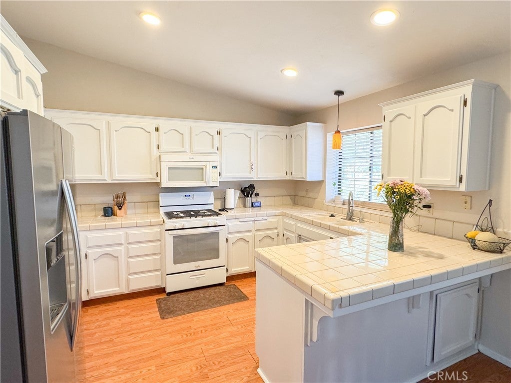 You'll love this home with a new roof!!!! This home offers 4-bedrooms, 1.75-bath home with a 2-car garage. It features a large formal living room, vaulted ceilings, and a lovely kitchen with a nook and built-in cabinetry. The interior has been freshly painted, and the bedrooms offer plenty of space, including a primary suite with a private bathroom and direct access to the backyard. Outside, enjoy a covered patio overlooking a pool and spa with newer pool equipment perfect for entertaining or relaxing.