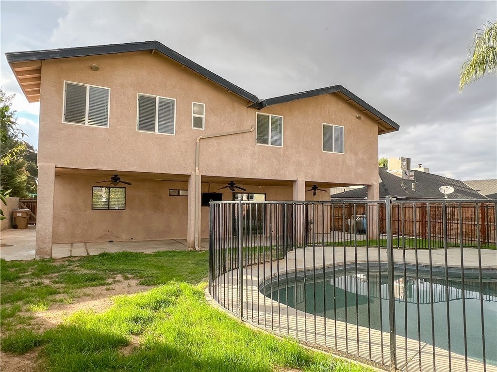Don't miss this amazing opportunity! This spacious two-story home features 4 bedrooms, 2.5 baths, and a 2-car garage. Inside, you'll find a formal living room with a cozy fireplace, an additional living area perfect for a game room or formal dining space, and a generous kitchen with abundant cabinet storage, a breakfast nook, and a convenient laundry room. All bedrooms are located upstairs, including a large primary suite with a full bath, walk-in closet, and laundry chute. While the home offers great space and potential, it does need a little TLC. The paint is dated, the carpet has been removed, and it's ready for your personal touch and updates. The backyard is ideal for entertaining, featuring a large covered patio and a sparkling pool with rock waterfall and security fence.