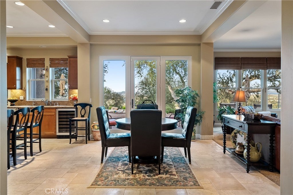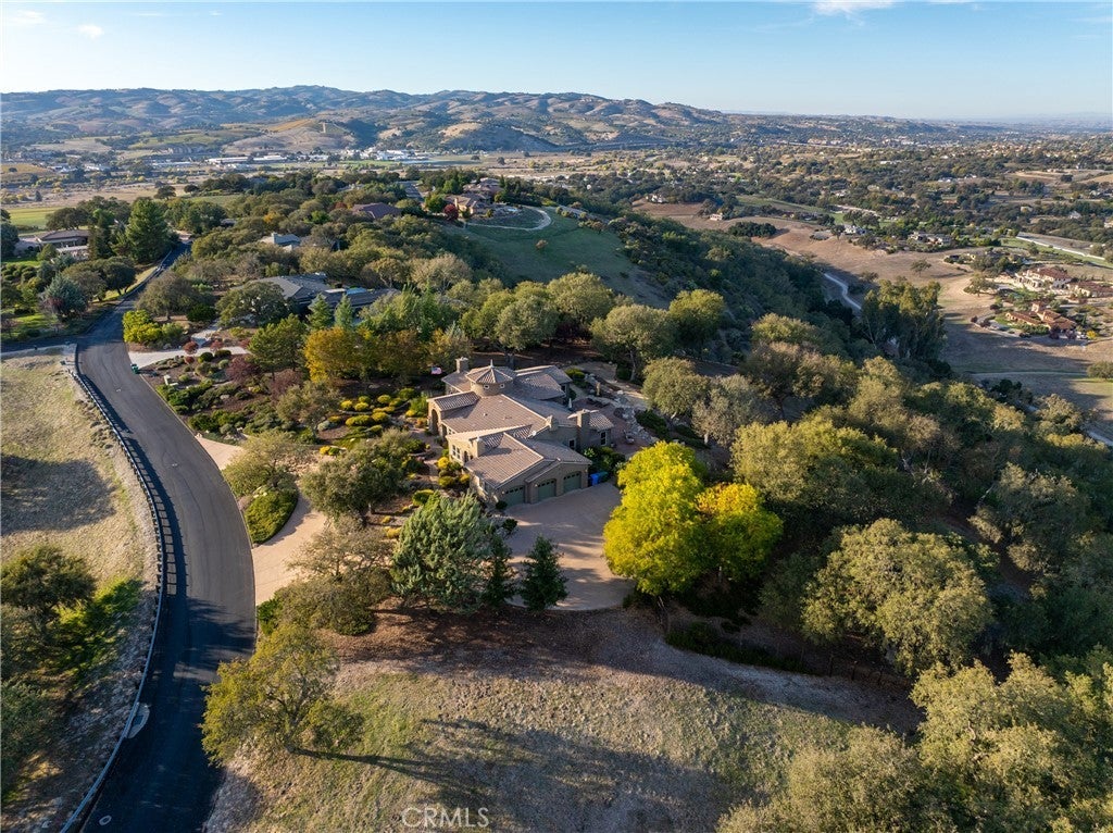 Experience refined Central Coast living in this stunning 4,146± sq. ft. Spanish Colonial estate, perfectly positioned on a private 3± acre parcel within the exclusive gates of Santa Ysabel Ranch. Enjoy sweeping 180° views of vineyards and mountains from nearly every room. This 4-bedroom, 3.5-bath home welcomes you through a grand rotunda entry with soaring ceilings, custom lighting, and travertine flooring throughout. The formal living and dining rooms feature tall Anderson windows framing breathtaking vistas and a cozy gas fireplace. The gourmet kitchen is equipped with GE Monogram stainless appliances, including a six-burner range, double ovens, wine fridge, and granite countertops with maple cabinetry. The adjoining family room and casual dining area create an inviting space for entertaining with seamless indoor-outdoor flow. The spacious primary suite offers privacy, dual walk-in closets, and a luxurious bath with soaking tub and large shower. Additional bedrooms and a flexible office space capture beautiful hillside and sunset views. Outdoor living shines with expansive flagstone patios, multiple sitting areas, and lush landscaping surrounded by heritage oaks - perfect for dining, relaxing, or entertaining under the stars. Additional features include an epoxy-finished 3-car garage with custom cabinetry, Culligan water system, ADT security, and custom lighting throughout. Santa Ysabel Ranch offers 24/7 gated security, walking trails, tennis courts, and a serene lake setting - an unparalleled blend of luxury, privacy, and natural beauty.