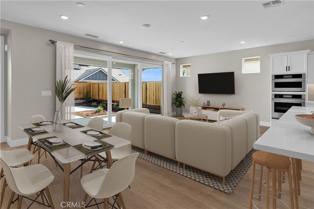 Welcome to Nevina, a 55+ community, where refined design meets the laid-back elegance of Paso Robles wine country. This thoughtfully crafted Connect II home features a gourmet kitchen with upgraded quartz countertops, a designer tile backsplash, premium KitchenAid stainless steel appliances, and classic Swiss Coffee painted cabinetry. The expansive great room seamlessly connects to the outdoors through a dramatic rolling wall of glass, leading to a covered patio with gas BBQ stub—ideal for both intimate evenings and lively gatherings. The primary suite offers a private retreat, highlighted by tall windows that fill the space with natural light and a spa-inspired bath with quartz counters, a tiled shower with frameless glass, and Shea Shower. Designer selections elevate every room, including luxury vinyl plank flooring throughout the main living areas and bedrooms, upgraded tile baths, two-tone interior paint, and 5½" baseboards. With an expanded laundry room complete with cabinetry and sink, bold black accents, and energy-efficient LED lighting, this move-in ready home blends function, comfort, and style in perfect balance. Nevina™—a Trilogy® Boutique Community™ offers more than a home—it’s a lifestyle. With an optional membership, residents can enjoy resort-caliber amenities, a planned vibrant clubhouse, and wellness-focused living. All of this is complemented by the vineyards, culinary delights, and natural beauty of Paso Robles—wine country living at its finest.