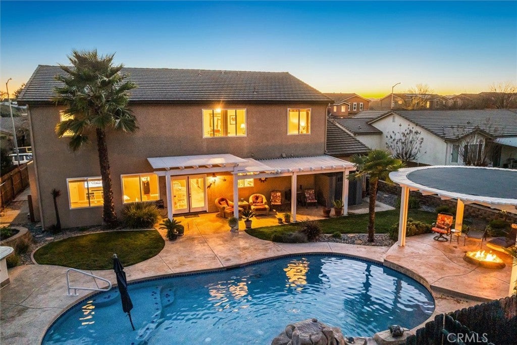 Welcome to 795 Angus Street, an exceptional Deer Park home that blends space, comfort, and resort-style living in the heart of Paso Robles. This beautifully maintained 5-bedroom, 3-bath residence is designed for both everyday living and effortless entertaining. The thoughtfully designed floor plan includes a main-level guest bedroom with a full bathroom and walk-in shower, ideal for guests or multi-generational living. Soaring ceilings highlight the formal living and dining rooms, while the expansive family room features a cozy fireplace, built-in media center, and is wired for both indoor and outdoor speakers. A bonus storage/media closet in the living area provides an ideal space for housing electronics, networking equipment, and keeping cables and components neatly tucked away for a clean, organized look. At the heart of the home, the spacious kitchen opens to the great room and offers granite countertops, a large center island, stainless steel appliances, and an owned soft-water system, perfect for gatherings both big and small. The home also features an alarm system with ADT components (system not currently activated or wired), along with an owned solar system with 32 panels, providing energy efficiency and long-term savings. Upstairs, a versatile loft area offers the perfect space for a home office or additional lounge area, adding flexibility to the home’s layout. Step outside to your private backyard oasis, where entertaining reaches the next level. Enjoy a sparkling saltwater pool with dramatic rock waterfall, an electric pool heater connected to solar, a beautiful pergola, built-in BBQ, fire pit, storage shed, and a large stamped-concrete patio. Lush landscaping with palm trees, vibrant floral gardens, green lawn, and a tranquil water fountain complete the setting. Car enthusiasts and adventurers will appreciate the 5-car tandem garage with epoxy flooring and a flexible bonus area, currently used as a man cave, perfect as a workshop, hobby room, or entertainment space. The spacious primary suite features a luxurious bath with a soaking tub, walk-in shower, dual vanity areas, and a walk-in closet. Additional highlights include an indoor laundry room, dual HVAC systems, NO HOA, and a prime location close to shopping, golf, schools, and freeway access—all just minutes from downtown Paso Robles, where you’ll find charming shops, world-class dining, and award-winning wineries. A true must-see property! Schedule your showing today before it’s gone!