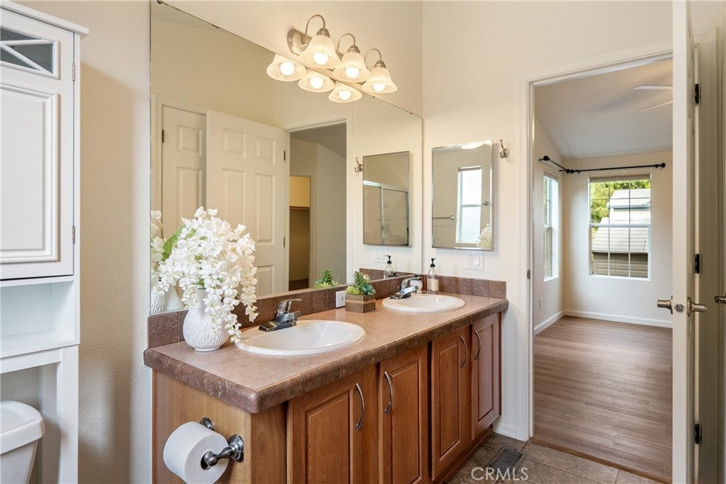 Wow! This is THE ONE for which you’ve been waiting. Situated in the desirable all age Laguna Lake Mobile Estates in the fabulous Perfumo Canyon area & centrally located to the many amenities of SLO, this beautiful & move-in ready manufactured home is comfortable & tranquil, drenched in views of the stunning Irish Hills. Recent upgrades include fresh interior paint throughout & new carpet in the secondary bedrooms. The ambiance of this special residence is enhanced by high ceilings, sparkling luxury vinyl flooring & a neutral palette. The front living areas seamlessly flow to the charming covered front porch, embracing the quintessential California indoor-outdoor lifestyle. The kitchen is equipped with a stainless steel appliance suite, gas burning stove, plentiful cabinetry, & easily opens into the spacious dining nook. The open concept floorplan’s front living areas are functional & framed by a myriad of windows creating a light & bright canvas. A private primary suite offers a generous walk-in closet, shower, vanity & linen closet. Two other bedrooms & a full sized hall bathroom round out the private spaces, allowing for guest & home office space. Interior appointments include ceiling fans, custom window shades & a dedicated laundry room with a back door leading to the carport & storage shed further enhancing the versatility of this elegant residence. Outside, you’ll find a yard which wraps around the home, perfect for gardening or relaxing. This home includes access to the incredible amenities of Laguna Lake Mobile Home Estates which include RV parking, a clubhouse with a full catering kitchen, meeting room, banquet facilities, sitting area graced by a majestic fireplace; an annex clubhouse (yep, that essentially makes 2 clubhouses!) with another full kitchen and meeting room, library and craft room; a seriously large swimming pool for exercise as well as lounging; sparkling spa, lots of monthly activities including potlucks & games, all of which provide excellent spaces to enjoy & connect w/ your wonderful neighbors. This truly is a terrific community with neighbors who care about each other. Move-in ready, this clean and well-kept home combines convenience, comfort, & community living in a prime location. Close proximity to downtown SLO, local shopping centers & our fabulous coastal towns and beaches, too. With modern features, an open & airy interior & vibrant community setting, 1704 Garnette Drive fully embraces the charm of Central Coast living.