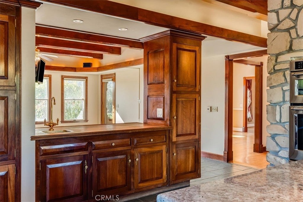 • Interior FeaturesSeparate/Formal Dining Room, Balcony, Beamed Ceilings, Built-in Features, Country Kitchen, Granite Counters, Main Level Primary, Wet Bar