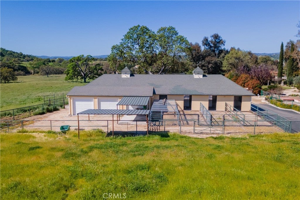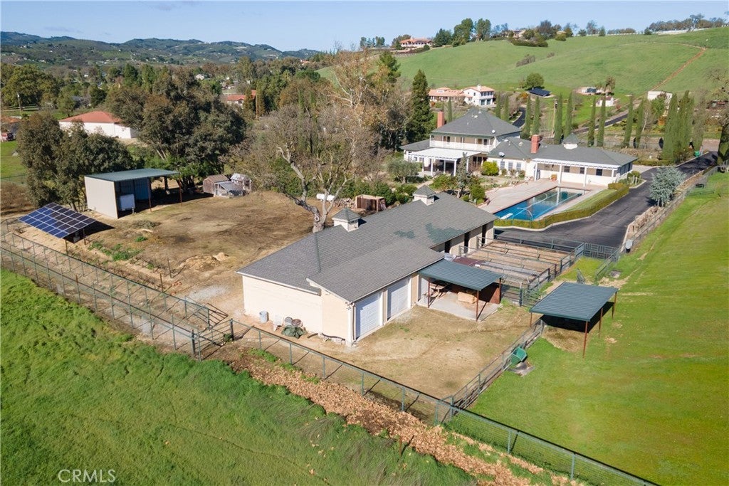 You must see this stunning Country Ranch home with lovely views in each direction in a highly desirable neighborhood. This distinctive Spanish Camp beauty on almost 5 acres is located just outside the city limits of Paso Robles. Nestled in the heart of this prized community you will find more of what your heart seeks than almost anywhere. The 4 bedroom plus office home of 3930 square feet has a primary bedroom and office downstairs plus 3 bedrooms upstairs one of which is en suite. From the marble tiled entry with sweeping staircase to mahogany cabinetry and woodwork throughout this classic home to the Vermont slate floors and native rock wall fireplace, you will be delighted with the attention to detail in this 1988 built home. This horse ready property will delight any equestrian with it’s 4 stall barn, tack room, and storage garage for an 4 additional vehicles. Steel pipe fencing surrounds the acreage and is used as cross fencing for the pastures. It also encompasses a riding arena of approximately 230' X 100' with a raised viewing stand. This arena would please any ranch or dressage rider. Or perhaps you need a private soccer field? And for those who love a summertime party, the covered patio which overlooks the 75’ X 17’ lap pool is ready for fun and exercise. The land includes an olive orchard of over 30 trees as well as an organic pomegranate orchard with over 50 bushes. There are raised garden beds, fruit trees and grape vines planted throughout this lovely property. An owned solar system and on demand hot water unit help with utility costs. This property is designed to be lived in, lived on and loved for all it has to offer. So much to see and experience. Homes of this quality rarely hit the market. Now is your chance to buy a property that is ready and waiting to answer your dreams. Call us now to view this dream come true.