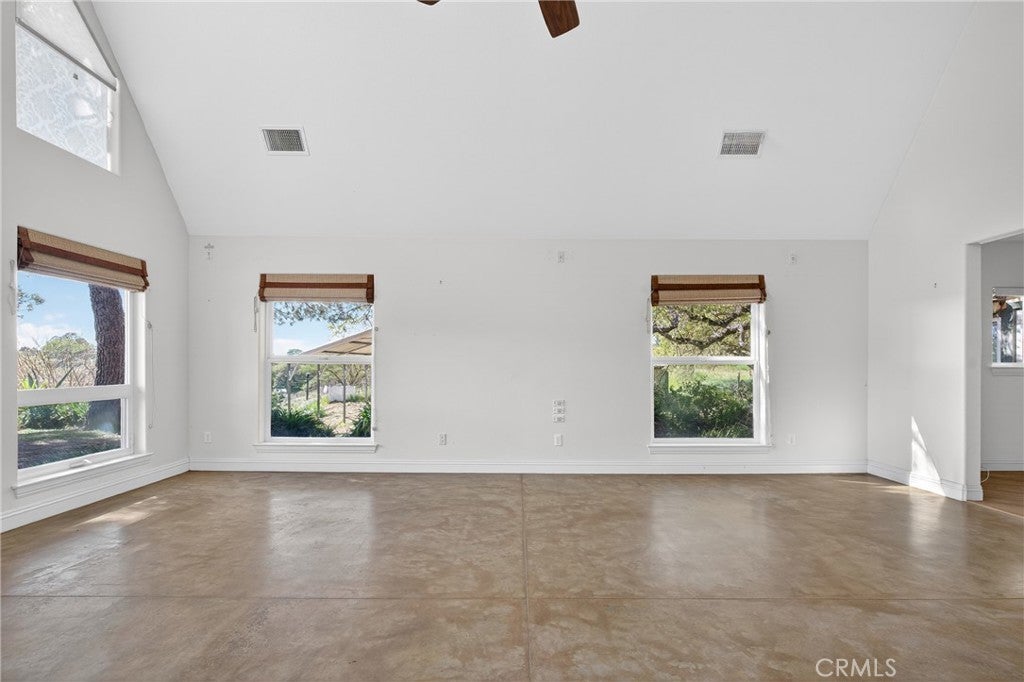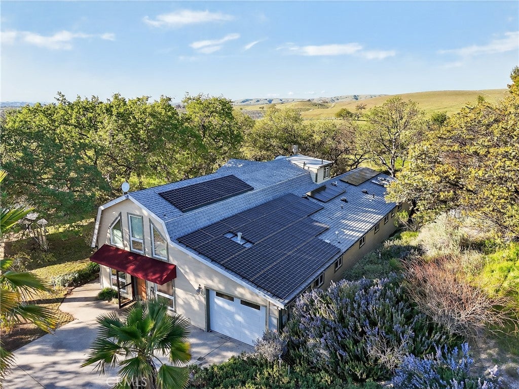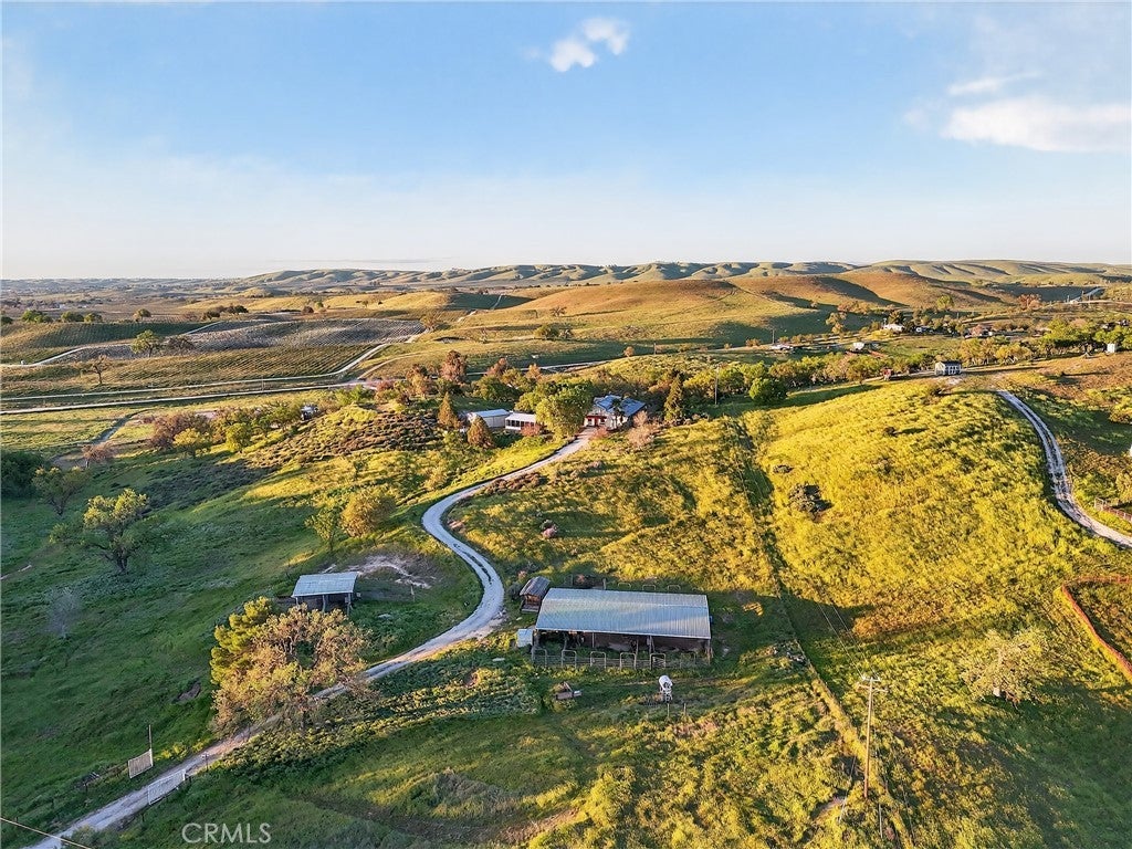 Wake up to wide open skies, rolling hills, and the kind of quiet that reminds you why you love living in Paso Robles wine country. 3476 Redtail Place offers peaceful country living on more than 11 scenic acres, where you can enjoy both sunrise and sunset views from your own private slice of countryside. With nearly 3,000± square feet of living space, there is room to spread out and create the lifestyle you envision. The living room welcomes you with polished concrete floors and soaring high ceilings that enhance the sense of openness and natural light. Nearby, the spacious dining room is ready for gatherings, celebrations, and everyday meals with a view. The kitchen features white cabinetry and updated stainless steel appliances, positioned conveniently near the main living areas. Just beyond, you will find the laundry area, garage access, a guest bath, and a dedicated office space that works well for remote work or managing daily operations on the property. The primary suite is located on the main level and offers generous proportions, an en suite bath with dual sinks, and a walk in shower. It is a comfortable retreat with space to personalize over time. Upstairs, two additional bedrooms offer a unique open connection to one another, creating flexible space for shared living, a creative studio, or a playroom layout. One of these bedrooms includes its own full bathroom suite, adding versatility for guests or extended living arrangements. Step outside and experience the true potential of this property. 2 pole barns, 20x30 shop with concrete floor and 220 power, fenced pastures and additional sheds provide room for equipment, hobbies, livestock, or 4H projects. With over 11 gently rolling acres, there is ample space for animals, gardens, and enjoying the peaceful surroundings. The home reflects its rural setting and offers the opportunity for thoughtful updates, allowing the next owner to shape it into something truly their own. Leased solar is in place, contributing to energy efficiency. If you have been dreaming of wide open space, scenic views, and room to grow, 3476 Redtail Place invites you to explore the possibilities and imagine life here. Call today!