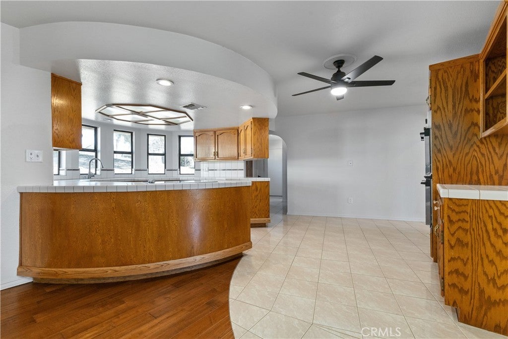 • Interior FeaturesBreakfast Bar, Built-in Features, Ceiling Fan(s), Separate/Formal Dining Room, High Ceilings, Tile Counters, Main Level Primary, Entrance Foyer