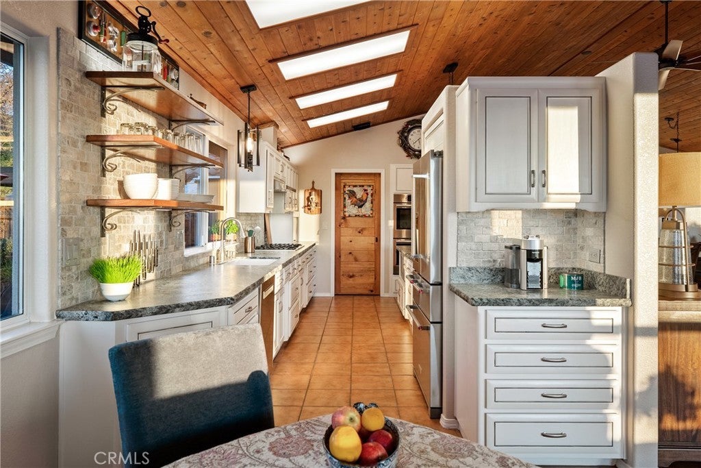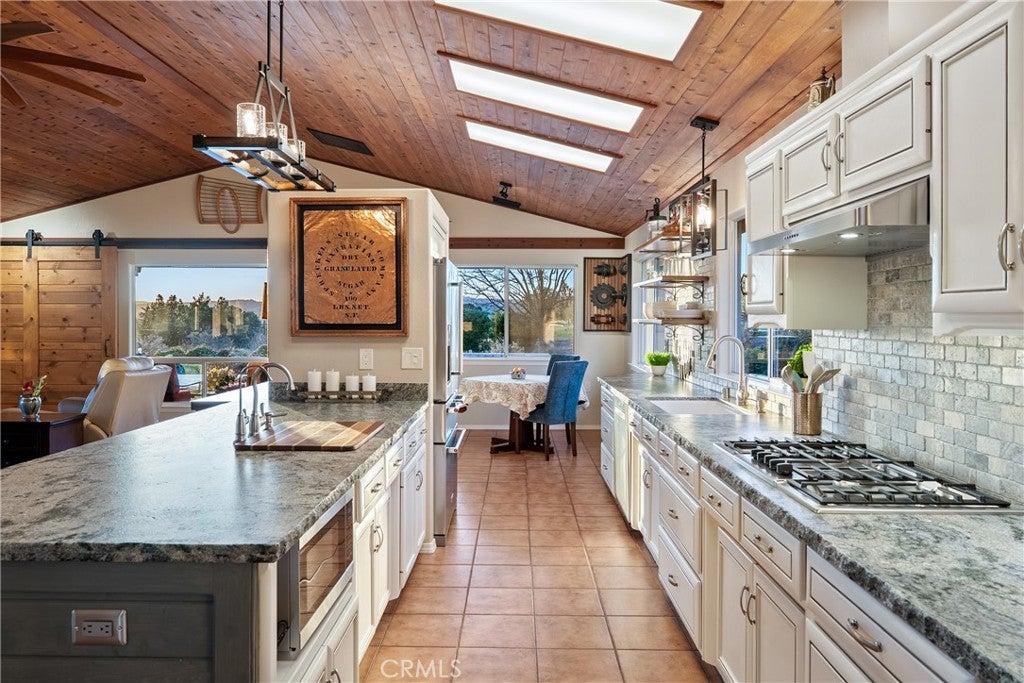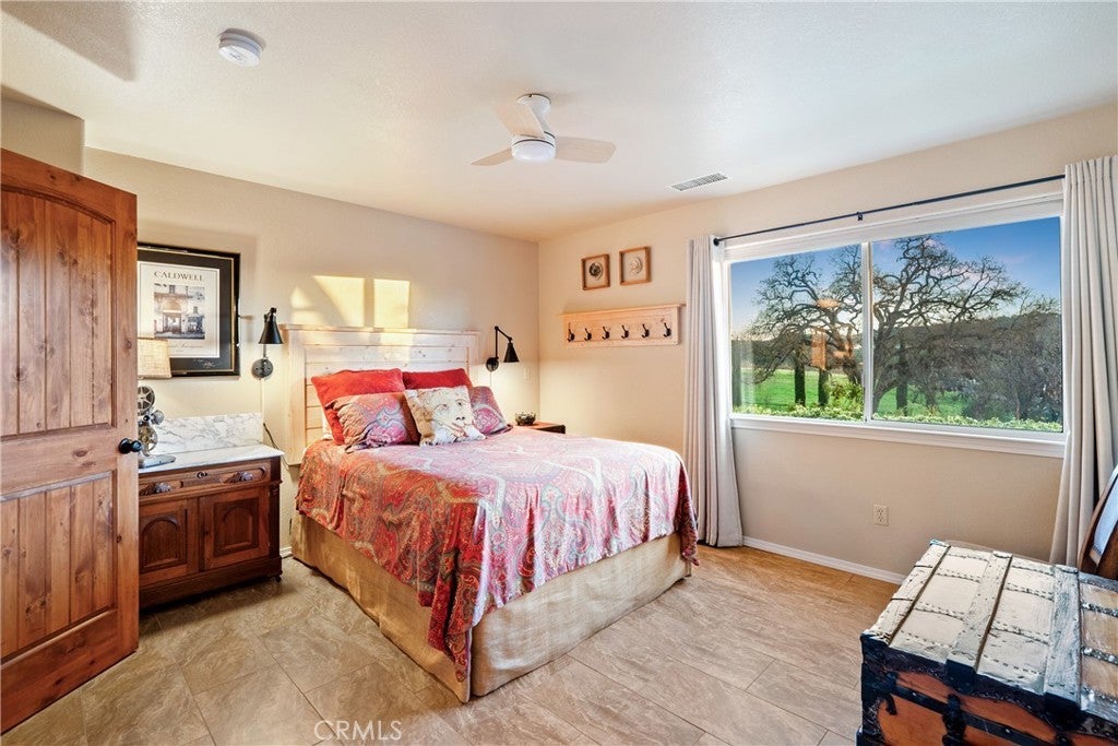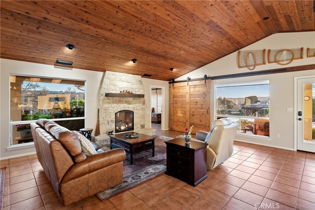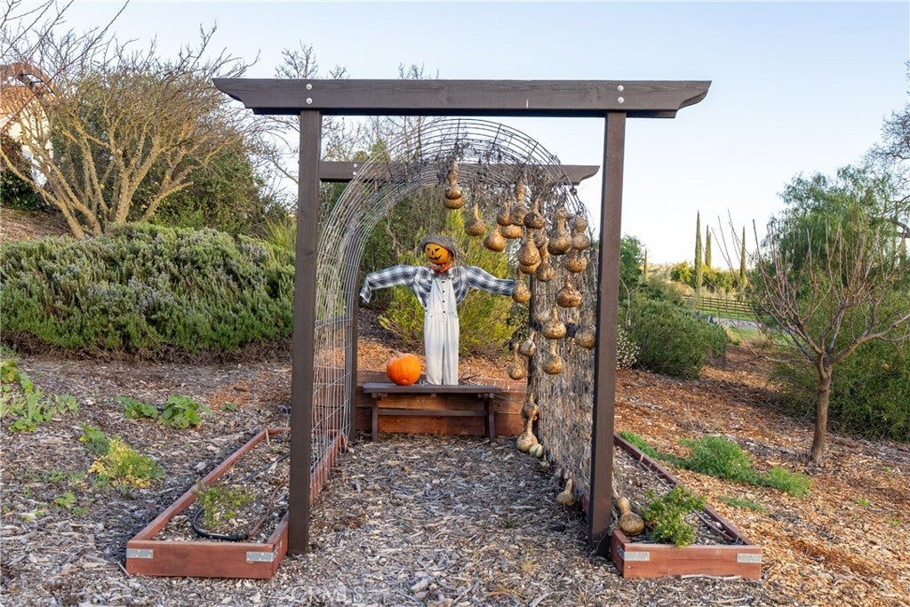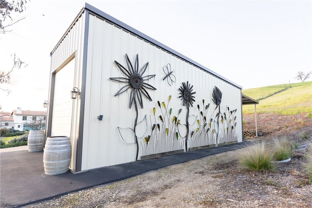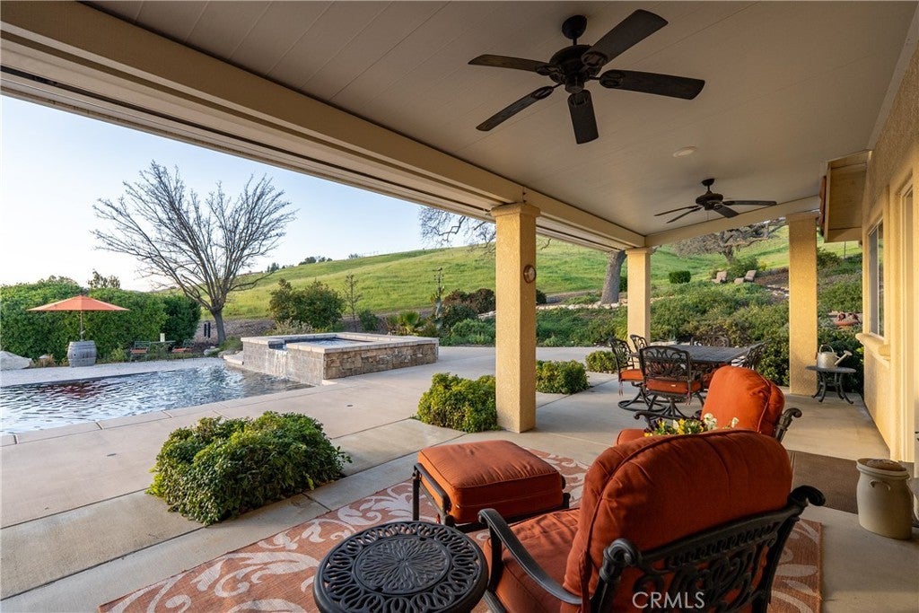 Welcome to Casa de Robles in the highly desirable Spanish Camp area of Paso Robles, an extraordinary private retreat set on seven gently rolling, fully deer-fenced acres behind an electronic gate with a circular driveway. This beautifully remodeled estate, which is just minutes to charming downtown, blends modern efficiency with refined luxury and offers unforgettable sweeping views. Entering this single-level home you will love the vaulted exposed wood ceilings, tile floors, a custom barn door which artfully hides the included TV, and a custom Mendota fireplace with real Adelaida stone. Notably there are no stairs or steps into or out of the home. A fully owned solar system, newer HVAC, high production well, and cleared septic and pest inspections offer true peace of mind. The stunning chef kitchen features live-edge stone countertops, double oven, open shelving, a walk-in pantry, dedicated coffee station, and an impressive 132-bottle Sub-Zero wine refrigerator, creating the perfect space for entertaining. The spacious primary suite is a serene escape with a spa-inspired bath and expansive walk-in closet, while a whole-house Hague water filtration system enhances everyday living. Each bedroom has a dedicated bathroom. Outdoors, the infinity-edge PebbleTec pool with spa spillover takes center stage, complete with electronic child safety barrier and both gas and passive solar heating options and situated perfectly to take in the stunning view and is just steps away from the covered patio with electronic awning and fans. Ideal for hobbyists or collectors, the property which has covered parking for 5 vehicles plus RV, includes a 2½-car attached garage with polyaspartic flooring and custom storage, a detached two-car shop with heat and air and a dust collection system, and a substantial steel RV building with its own private access road and gated entry. Garden enthusiasts will appreciate ten raised beds, pergola, fire bowl, low-v landscape lighting, bocce ball area, a massive garden shed with sink and work stations, and the thoughtfully designed landscaping with auto-drip along with majestic oak trees, while charming touches like a vintage 1960 Shasta trailer playhouse and landscape art adds character and warmth to this truly one-of-a-kind Paso Robles estate. No HOA.