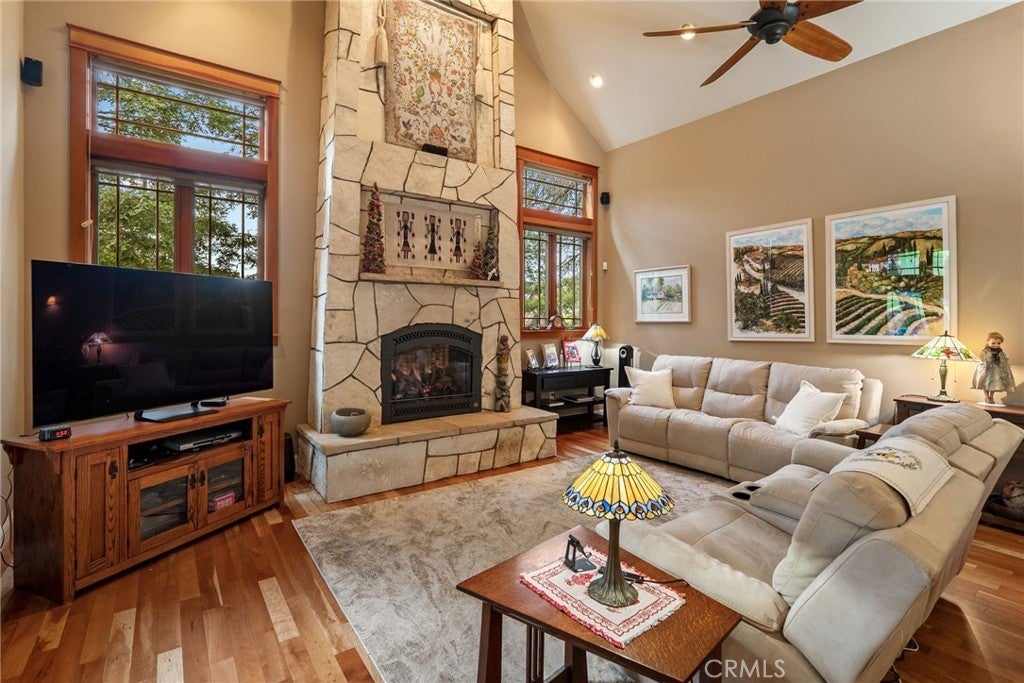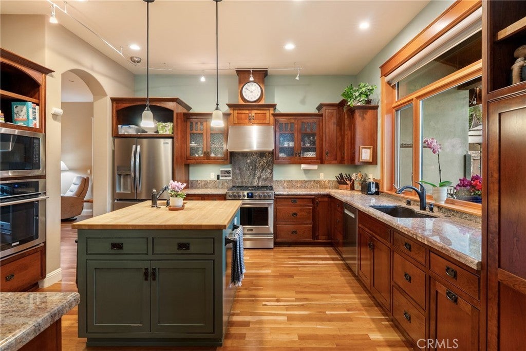 Located on the desirable West Side of Paso Robles, this custom-built 2010 Craftsman home blends thoughtful design, quality construction, and exceptional walkability just moments from downtown restaurants, wine bars, and City Park. Built with 6-inch thick interior and exterior walls, the residence offers enhanced durability, efficiency, and comfort. Inside the 2,600± sq ft main home, hardwood floors flow through the kitchen, living room, family room, and hallways, while Milgard dual-pane windows with craftsman trim bring abundant natural light. Energy-conscious upgrades include owned solar, fire sprinkler system, tankless Rinnai water heater, and fire and home security systems. The chef’s kitchen showcases custom Morro Bay Cabinets, granite countertops and backsplash, a butcher block island workstation, and an impressive 23" x 104" breakfast bar. Premium appliances include two dishwashers, two ovens, refrigerator, built-in microwave, wine cooler, and trash compactor, making the space ideal for entertaining and everyday living. The primary suite retreat features a fireplace, private patio access, and a cathedral-style sunken ceiling. The spa-inspired en-suite bathroom offers a 10-foot dual vanity with seated personal vanity area. The walk-in closet features built in organization systems and is plumbed for a stacking washer and dryer inside. Additional highlights include a 650 ± sq ft studio ADU with full kitchen and ¾ bath, providing flexible options for guests, rental income, or multi-generational living. Outdoor living is equally impressive with a back patio featuring a wood-burning fireplace, multiple seating areas, traditional spa, and swim spa, plus convenient RV parking. A rare West Side opportunity combining craftsmanship, efficiency, and versatile living spaces in a prime Paso Robles location.