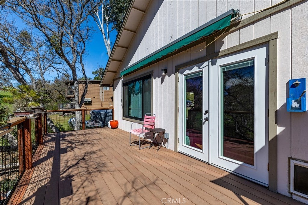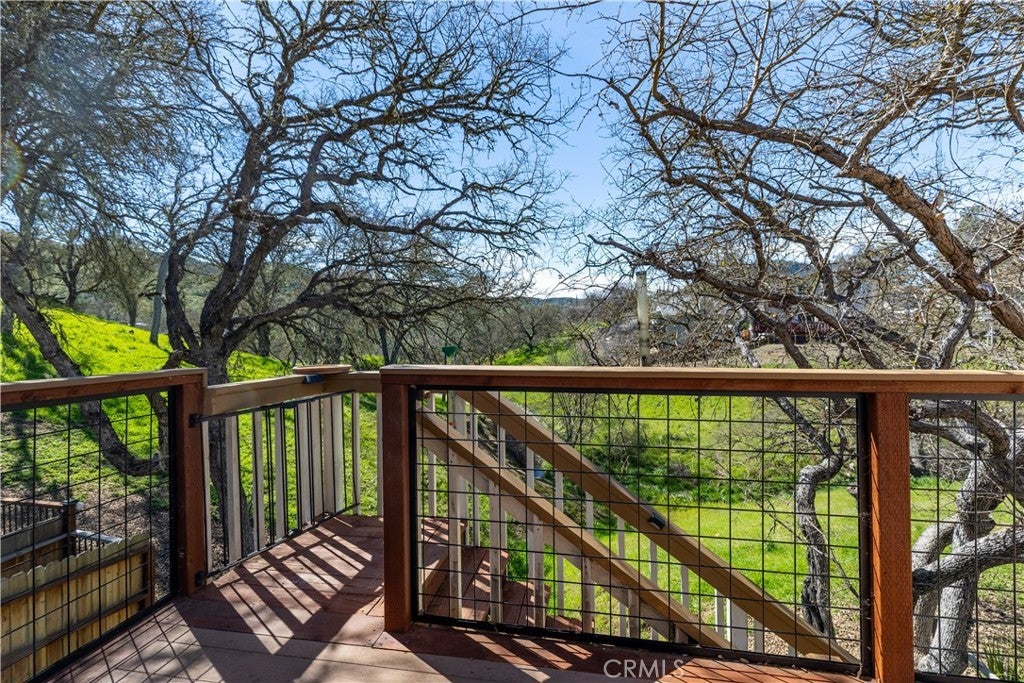 Peaceful meadow and mountain views set the tone for this charming 3-bedroom Solar home backing to open space with a seasonal stream and frequent wildlife sightings. This open-concept floor plan is filled with natural light, calming inviting paint tones, and captures the tranquil views from both the living areas and expansive outdoor decking. A cozy pellet stove in the living room adds warmth and charm, creating the perfect space to relax on cooler evenings. The main bedroom offers a comfortable retreat featuring a newly redesigned modern bathroom with stylish finishes. The lovely kitchen showcases granite countertops, stainless steel appliances, a convenient bar counter for casual seating, and elegant teardrop lighting that adds warmth and character to the space. Recent improvements include a newer roof, upgraded windows, updated HVAC system, and refreshed decking — creating wonderful outdoor entertaining space within a peaceful setting where you can often relax and watch deer meander through the surrounding open space. Tesla solar adds energy savings, while the private hot tub creates the perfect space to unwind and enjoy the natural surroundings. The home features two view decks ideal for morning coffee, entertaining, or simply taking in the open-space setting. Downstairs offers a versatile bonus room plus an additional unfinished space ready for your vision — ideal for potential game room, wine cellar, hobby room, maybe additional bedroom. Located within walking distance to a neighborhood park, this adorable home offers flexibility, privacy, and beautiful natural surroundings. Enjoy the Heritage Ranch lifestyle with community amenities and events including a private marina, pickleball and tennis courts, swimming pools, parks, and lake access — all just a golf cart ride away. Just 20 minutes from downtown Paso Robles and less to many wineries. Several beach communities are just a 40 minute drive. Just outside the gated community lies full size grocery store, restaurants, gym, hair/nail salon and K-8th grade school. This is a very active community with miles of trails and something for all ages. There are always events going on such as Easter Egg hunts, golf cart parades, BBQ's, music in the park and much more. SECTION ON COMPLETED FROM TERMITE REPORT.