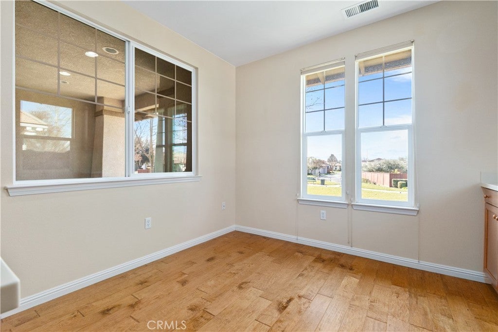Welcome to this beautifully maintained home located in the highly sought-after Traditions 55+ community. This 1,772-square-foot Legacy Series Prairie Model offers comfort, thoughtful design, and a wonderful setting within the neighborhood. Situated as a desirable end unit, the home enjoys convenient guest parking along Traditions Loop. The front entrance opens directly onto a beautifully manicured greenbelt maintained by the HOA, creating a peaceful and inviting first impression. The finished two-car garage is accessed from Benicia Lane and includes an attached 200+/- square foot hobby room, complete with its own mini-split heating and cooling system, perfect for projects, crafts, or additional workspace. Inside, the spacious floor plan offers flexibility and comfort. The primary suite features an ensuite bathroom and a generous walk-in closet. A convenient half bath is located near the main living area for guests. The home also includes a versatile den, ideal for use as an office, library, or potential third bedroom. Toward the rear of the home, you’ll find the guest bedroom, full guest bathroom, and laundry room. The kitchen features beautiful engineered-wood flooring, solid-surface countertops, under-cabinet lighting, and a newer stainless-steel oven and microwave combination. A charming breakfast nook provides a lovely window view of the greenbelt. The living room offers warmth and ambiance with a gas fireplace that lights instantly with the flip of a switch. Step outside to a delightful, fenced courtyard, complete with a fountain, brick walkways, and planters filled with roses that are spectacular when in bloom. The covered patio creates the perfect space to relax and enjoy peaceful summer evenings overlooking this charming garden setting. Residents of Traditions enjoy a vibrant lifestyle with access to the community clubhouse amenities, including an Olympic-style swimming pool, spa and BBQ areas, fitness center, library, and meeting rooms, all within the security and privacy of this beautifully maintained gated community.