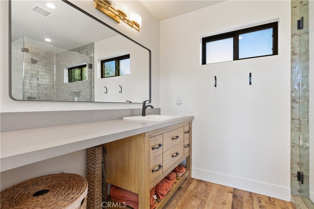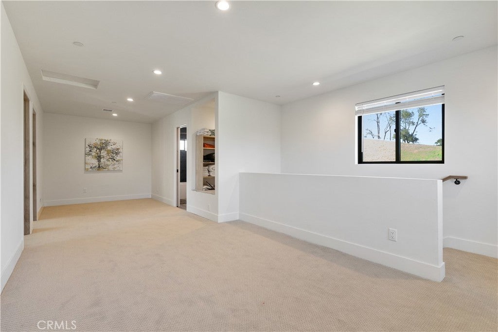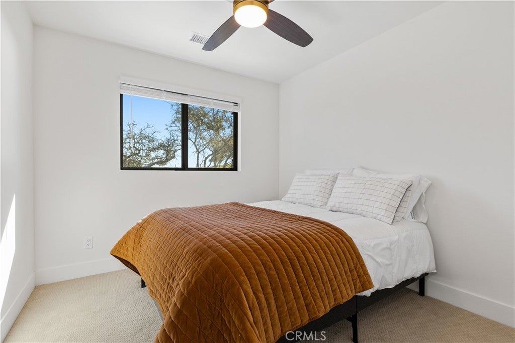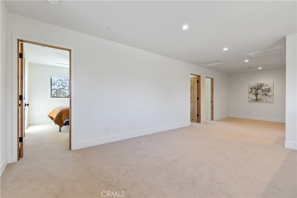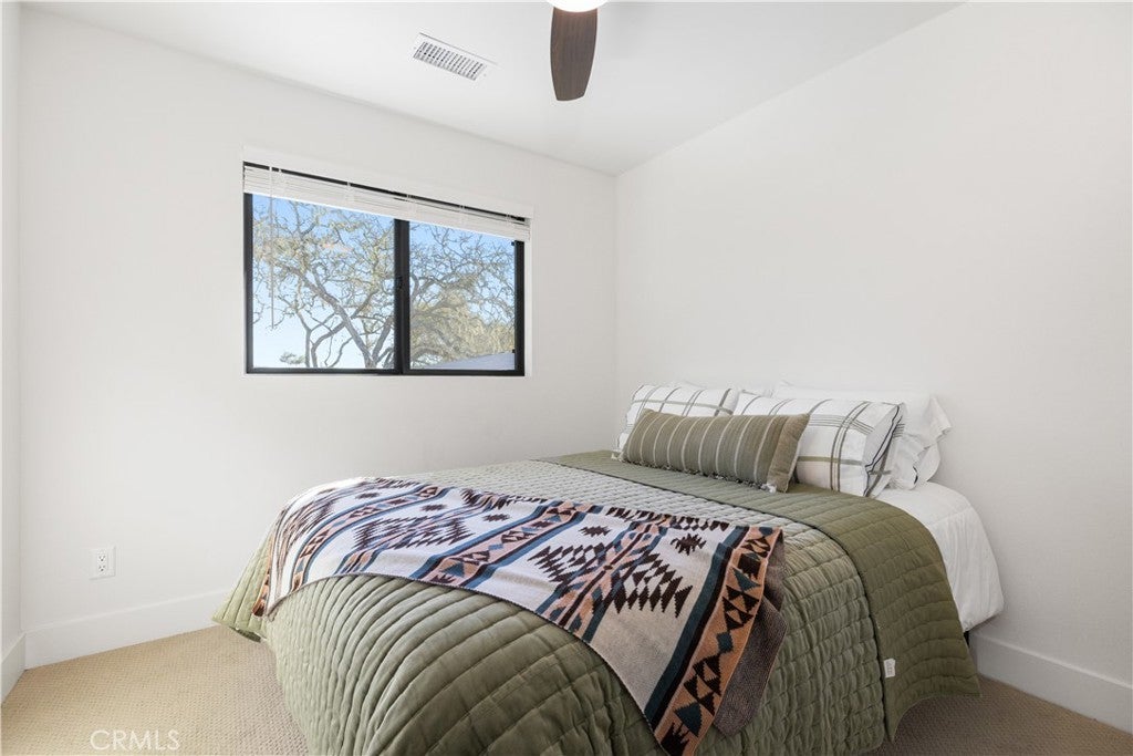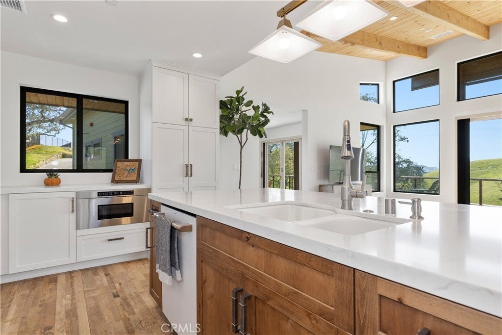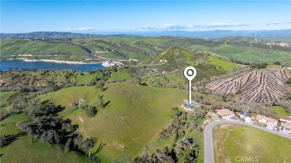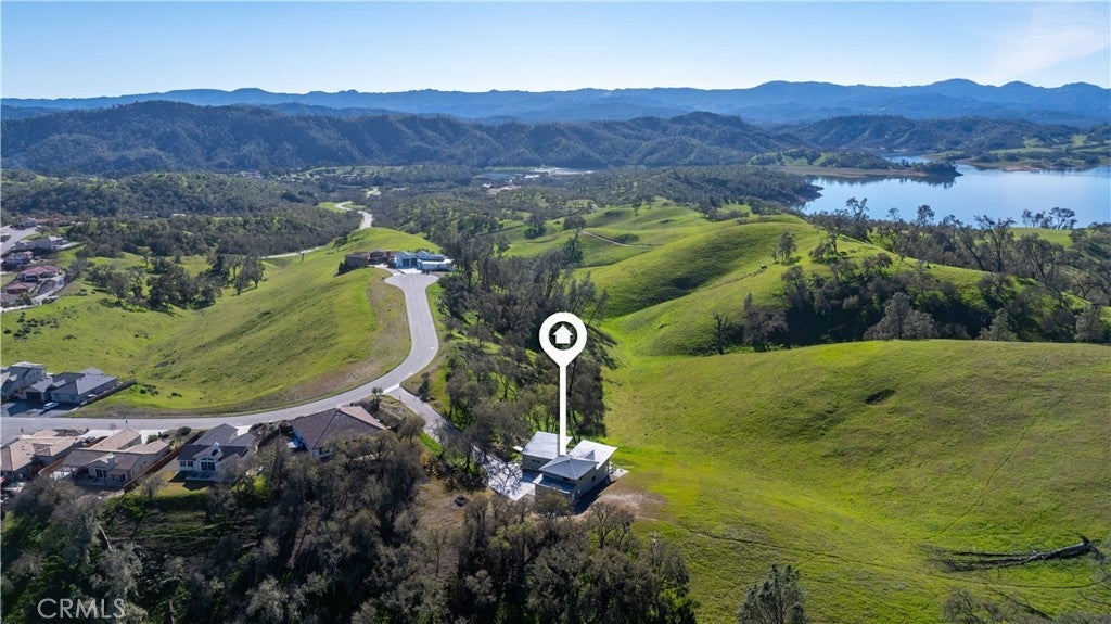 Walls of glass open to endless rolling meadows, majestic oaks, and sweeping mountain views from this private hilltop retreat. This stunning new construction blends architectural design, nature, and luxury lake living inside the gated community of Heritage Ranch at Lake Nacimiento. Soaring cathedral ceilings and expansive walls of glass fill the open floor plan with natural light while framing breathtaking views from nearly every angle. Repurposed teak flooring from Indonesia featuring natural character adds warmth and uniqueness throughout the main living areas. Retractable glass doors in foyer, living room and primary suite create seamless indoor-outdoor living, allowing the surrounding meadows, mountains, and wildlife to become part of the everyday living experience. For added luxury automatic shades lower for main living space and primary bedroom. The chef’s kitchen features a striking two-tone design with quartz countertops, a large gathering island, GE Café appliances, soft-close cabinetry, built-ins, and a beautifully handcrafted carved corbel imported from Colombia above the range. The kitchen flows effortlessly into the living and dining spaces, making it an ideal layout for entertaining while enjoying the peaceful natural setting. The spacious primary suite is designed as a private retreat with retractable doors opening directly to the patio and surrounding views. A dedicated sitting area, large walk-in closet, and stunning spa-style bath with walk-in shower complete the suite. Upstairs, a family room is conveniently located just outside three additional bedrooms and a full bath, providing flexible space for guests, hobbies, or a second living area.Outdoor living is equally impressive with multiple patio areas, a fire-pit gathering space, and beautifully designed 2" fir-wood-enclosed soffits with recessed lighting that provide both architectural character and shaded outdoor living. Surrounded by open meadows and majestic oaks, the home enjoys exceptional privacy and a quiet natural setting rarely found.Additional highlights a dedicated boat garage, handcrafted interior door, two zoned HVAC and quality craftsmanship throughout.Residents enjoy access to a private marina with boat launches, swimming pools, pickleball and tennis courts, parks, equestrian trails, and year-round community events- all just a golf cart away