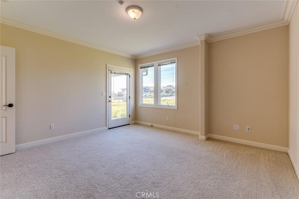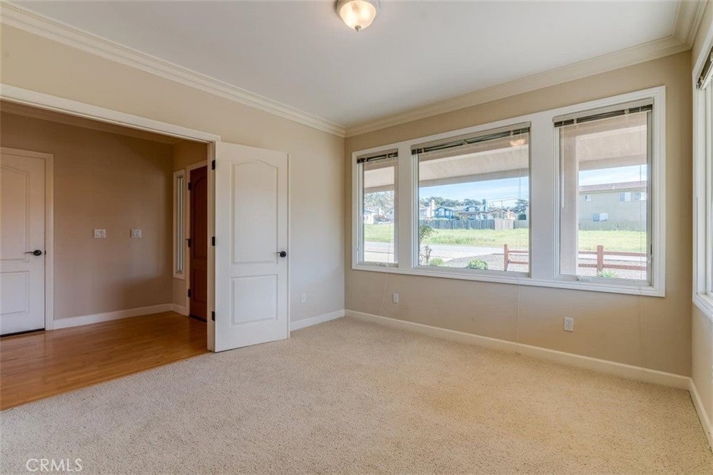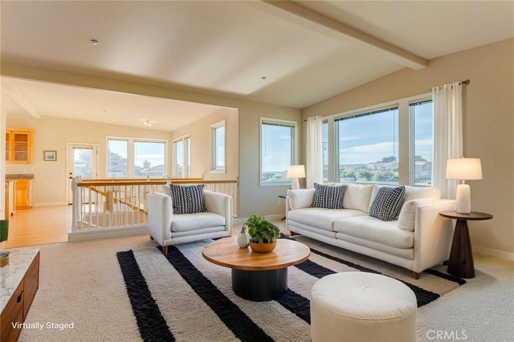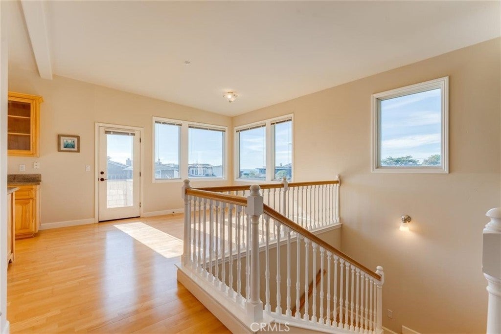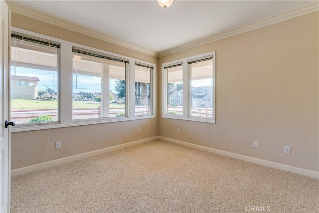 Coastal living at its best in the desirable Marine Terrace neighborhood, just steps to beach access. Built in 2005 and thoughtfully designed for the Central Coast climate, this beautifully crafted home sits on a corner lot and offers approximately 2,303 sq. ft. of living space. The flexible floor plan includes 3 bedrooms, a study/office, and 3.5 bathrooms. The main level features a private secondary bedroom suite with exterior access, an additional bedroom, study/office, hall bath, and interior laundry. The upper level offers the primary suite along with the main living areas, including the kitchen, dining room, living room, powder room, and access to an exterior deck ideal for enjoying the coastal air. The kitchen features natural birch cabinetry, granite countertops, Dacor stainless appliances, Grohe faucet, Kohler chef’s sink, prep sink, and pantry. Quality craftsmanship throughout includes Andersen casement windows, durable Hardie board siding and shingles, solid core interior doors, and Emtek burnished bronze hardware. Interior finishes include maple hardwood floors in the foyer, stairway, upper hall, powder room, dining room, and kitchen, crown molding in downstairs bedrooms, tile bathroom floors, and carpeted bedrooms. A well-built coastal home offering comfort, craftsmanship, and a prime location near the scenic Fiscalini Preserve nature trails and the stunning Cambria coastline.