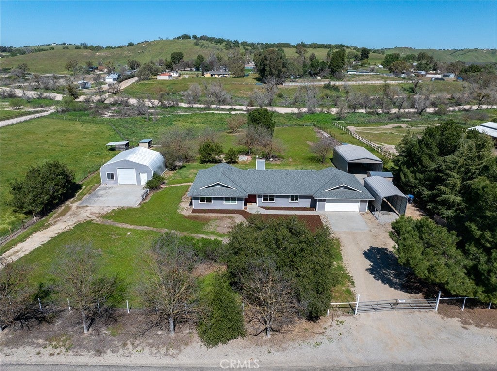 Enjoy the space and lifestyle of Paso Robles country living! Situated on 5.78± acres in the highly desirable Dresser Ranch neighborhood of Paso Robles, with direct riverbed access for horseback riding. This 3-bedroom, 2-bath home offering approximately 1,900± sq ft provides a comfortable setting surrounded by open space and scenic surroundings in a desirable rural area. Equestrian amenities include approximately 2 acres of fenced pasture, ideal for horses or livestock, with the added benefit of riding access right from the property. The property is well-equipped with an oversized four-car garage, a 48x48 workshop, 36x22 covered trailer/RV carport, and an additional 26x12 covered carport, offering excellent storage and flexibility for vehicles, trailers, and equipment. Recent improvements include updated roof, fascia and windows giving you peace of mind for the future. After a day of riding or working in the shop, relax in the hot tub and enjoy the peaceful Paso Robles countryside. A rare opportunity to own a well-located acreage property with equestrian potential, ample shop space, and room to roam.