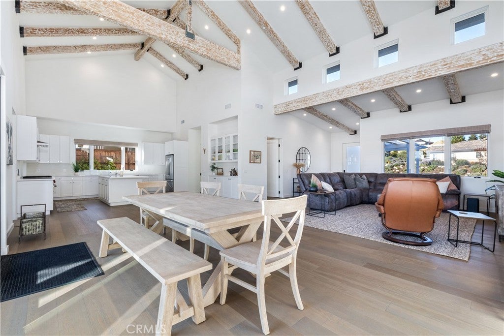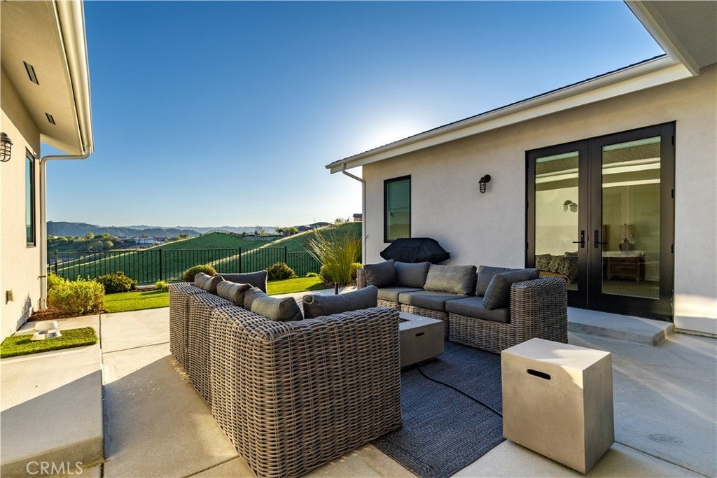 Soaring two-story cathedral ceilings with artistic beams, panoramic coastal mountain views, and protected open space privacy define this exceptional custom residence inside the gates of Heritage Ranch at Lake Nacimiento. Designed to capture natural light and surrounding landscapes, the home blends modern architecture, craftsmanship, and relaxed lake living. Inside, the open great room floor plan seamlessly connects the living, dining, and kitchen spaces, creating an ideal setting for entertaining while framing the surrounding hills through expansive glass doors. The chef’s kitchen offers both style and performance with a commercial-grade six-burner Wolf range, gorgeous white Corian countertops, a generous center island, and custom soft-close cabinetry. Built-in cabinetry throughout home and thoughtful storage add both elegance and functionality, including a beautifully integrated serving and display area within the main living space. The spacious primary suite serves as a private retreat featuring a dressing room with extensive cabinetry and a spa-inspired bathroom designed for relaxation. Three additional bedrooms, one being an ensuite, provide flexibility for guests, family, or office space. A unique courtyard-oriented design allows the main living areas and bedrooms to open toward a private outdoor entertaining space, creating seamless indoor-outdoor living. Positioned with protected open space along both the side and rear of the home, the property enjoys exceptional privacy along with sweeping coastal mountain views and peaceful meadow landscapes where deer and native wildlife are frequent visitors. Additional highlights include an oversized laundry room with sink and extensive cabinetry, a large two-car garage designed to accommodate a pontoon boat, and low-maintenance landscaping with artificial turf. Located within the gated community of Heritage Ranch, residents enjoy a private marina and boat launch, pools, pickleball and tennis courts, parks, trails, and year-round community events—all just a golf-cart ride away. Just outside the gates we have restaurants, gym, grocery store, hair salon and K-8th grade school.