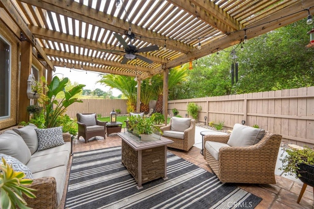 Welcome to this inviting family home in a quiet cul de sac in Paso Robles perfectly situated for raising a family or enjoying relaxed California living. Offering approximately 2465 square feet of thoughtfully designed space this four bedroom two and a half bath residence features a spacious three car garage and an open modern floor plan. Step inside to beautiful vinyl plank flooring that flows throughout the main living areas creating a clean durable and stylish foundation for everyday life. The heart of the home is the gourmet kitchen complete with granite countertops, newer appliances and plenty of space for family meals and entertaining. A cozy fireplace in the living area adds warmth and charm on cooler evenings. Upstairs you will find a convenient laundry room, a dedicated office ideal for remote work or virtual learning and a versatile loft that offers flexible space for a play area, homework station or lounge. The primary suite and additional bedrooms provide comfortable retreats for everyone. Outside the beautifully landscaped backyard is a true highlight complete with a relaxing hot tub perfect for unwinding under the starry Paso Robles nights enhanced by pretty ambient lights. A charming pergola creates an ideal spot for al fresco dining or simply enjoying the fresh air. The entire property feels move in ready clean and well maintained. Conveniently located near shopping dining and top rated schools this home offers the perfect balance of privacy and accessibility in one of Paso Robles most desirable neighborhoods. Do not miss this rare opportunity to own a turnkey family gem with the added benefit of leased solar.