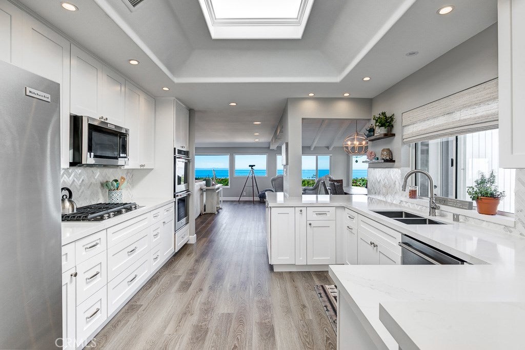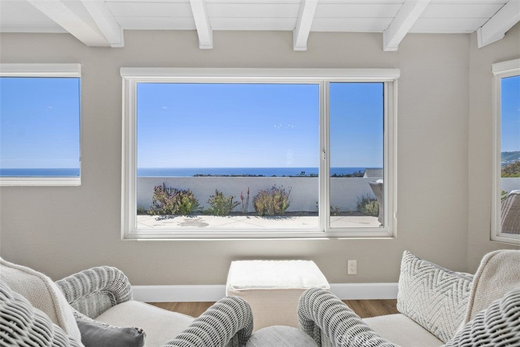 California sunsets surround you in this stunning single level ocean view home. This newly remodeled home is located in the private, gated community of Niguel Shores. The home is fully furnished with 3 bedrooms, office, and yoga room. From the moment you walk through the front door you will be captivated by the ocean views from almost every room. New wood like floors throughout, new kitchen and baths with quartz counter tops, and new appliances. Includes AC, utilities, cable, and WIFI. BBQ and out door dinning on the private courtyard. Views of Catalina Island, sunsets and palm trees will dazzle you daily. In this beach side community you will find a jr Olympic size pool, spa, tennis courts, sports courts, playground, shuffleboard, private beach parking and access, and a private bluff park where neighbors become friends. Walk to the Ritz, the Waldorf, hike the trails, or hop in a shuttle to Laguna Beach or Dana Point. The home has been painted and has new hardscape front and back. The pictures are a mixture of before and after the hardscape.