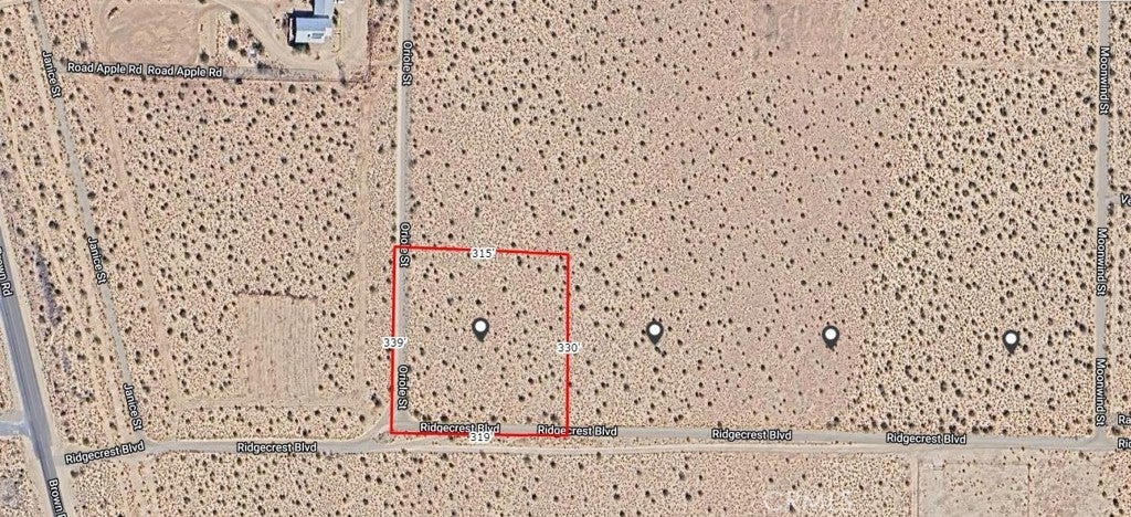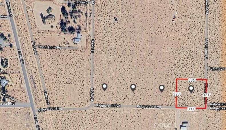 Gorgeous approximately 9.88 acres with amazing views. Great acreage, all flat and useable, with great access on three sides. An entire corner of a block in scenic Inyokern. Minutes away from Ridgecrest. Outstanding views of the foothills of the Sierra Mountains. Great area and neighborhood go look to appreciate many nice homes in this area, very close to hwy 395. Excellent for all Sierra activities, Lake Isabella, national parks, Mammoth mountain all nearby. Power about 500-600 ft away, water and gas on Oriole st a few parcels over. Sale is for Four adjoining parcels approx 2.47 acres each, 084-263-30-00-6, 084-263-31-00-9, 084-263-34-00-8, 084-263-35-00-1. A little less than a quarter mile long by about 339 feet wide. Put your own home then sell the remaining parcels, or create your dream Ranch. All 4 must sell together. Any depictions of lot lines are visual only, buyer to verify boundaries by legal survey if desired. Buyer to verify all uses, utility, zoning with Kern County and utility providers. Two of the parcels have metal stakes that may depict lot lines, but seller is unaware if they were legally surveyed in the past. GPS: 35.623095245720506, -117.80291959725048