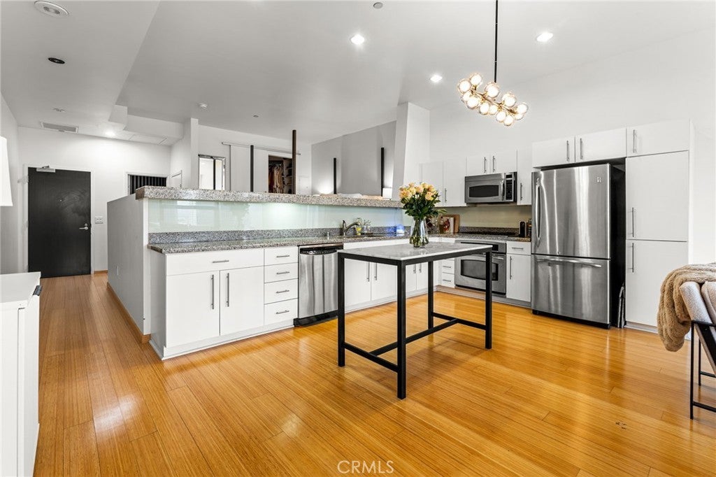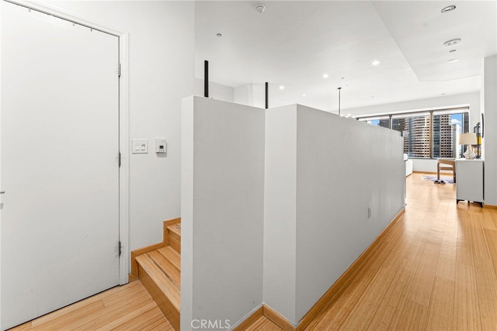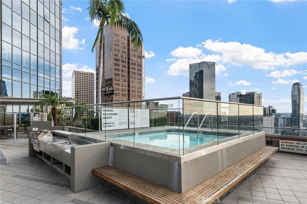 Included in the sale are four adjacent assigned parking spaces within the building! Perched on the 26th floor, this luxurious 1-bedroom loft offers breathtaking views of Downtown Los Angeles. Located in the prestigious 1100 Wilshire building, the unit features a European-style kitchen with stainless steel appliances, white cabinets, granite countertops, and a gas range. The bedroom is elevated and comes with a spacious walk-in closet. Additional amenities include in-unit washer and dryer, hardwood flooring throughout, and carpet in the bedroom. 1100 Wilshire provides an exceptional living experience with 24-hour security and concierge services, a fitness center, media room, and conference room. On the 17th floor, the Sky Deck boasts a heated infinity pool, spa, cabanas, lounge chairs, fire pit, and BBQ grill. This prime location offers easy access to Crypto.com Arena, LA Live, Regal Theaters, The Bloc, Ralph's, Starbucks, Target, Whole Foods, MOCA, Walt Disney Concert Hall, and a variety of Downtown dining and entertainment options. There are two (2) common-area potty areas for dogs. Amazon lockers on the 1st floor, and a self-checkout mini mart. Please note that the loft’s bedroom is not enclosed.