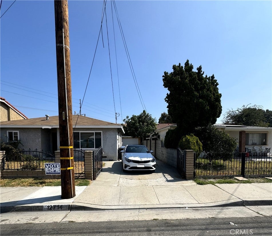 Convenient to the 605, the 5, and other freeways. Three bedroom two bath home with detached garage. Possible ADU? Nice wrought iron fencing with pedestrian and car gates. Walk to Vista Verde Park. Come and make this your own!