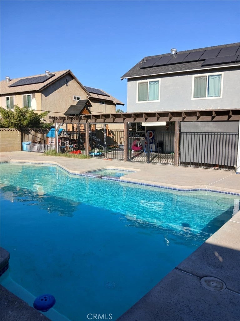 Standard sale!!! Only Pool, Jacuzzi home in the area!! Large, open and spacious Floor-plan for New Owner to enjoy in time for the Holidays!! Huge lot 7,000+Sqft lot, Over 2,000+Square feet inside, 2 levels, great open floor-plan includes cozy fireplace, 4 bedrooms, 3 baths. Expansive coverage Solar panels, Advanced Puronics filtered Soft Water system included is drinkable and connected to the entire house, showers, and kitchen, Refrigerator/ Freezer, Stove oven, microwave (included). Puronics filtered water system auto refill pitcher custom built inside refrigerator door. Large double door refrigerator on top and large freezer bottom with auto filtered ice maker. Recently, freshly painted walls inside with new Wainscoting panels for a lovely contrast look, plus new dark wood base board. Recently painted exterior. Home is 2 levels, spacious open floor-plan Cathedral ceiling and fireplace on the first floor also repainted and new wood mantle.. Beautiful kitchen with pretty marble style tile flooring, custom nice wood shelves included. Also, pretty custom back splash kitchen. Master-bedroom has walk in closet, custom built shelves top and bottom for additional storage. Newer, double-pane, Energy saving windows, well insulated. Newer Engineer Wood Floors through-out. included with the sale also, $2,000.00 well built playground in back yard. Also, additional RV access, parking. Attached 2 car garage, Quiet neighborhood, safe area, no crime, Family oriented... Short to walking distance to Parks, Close to good Elementary Schools, Good High Schools, Walking distance Restaurants, Shopping plazas. Close to Costco, Freeway. Down payment assistance available!!