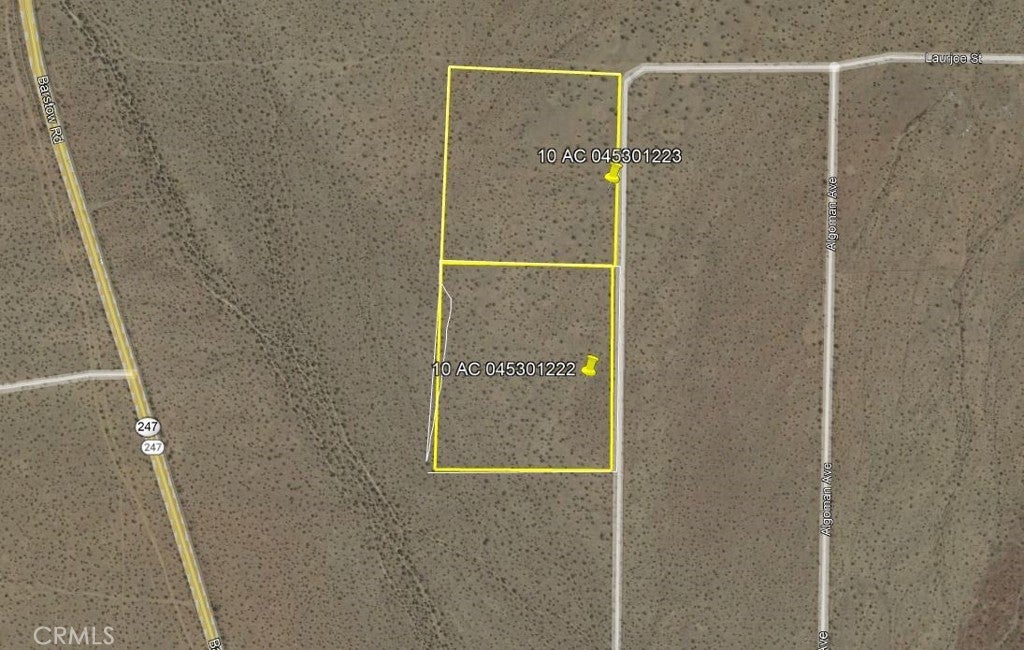 OPEN SPACE VIEW LOT - This 10-acre corner lot boasts a commanding view of the local mountains to the west and Hwy 247 (Barstow Hwy). Spanning approximately 661 ft x 661 ft, this parcel offers ample space yet remains conveniently close to amenities and services, ensuring you don't feel entirely isolated—unless that's your preference. Perched at an average elevation of 3150 ft, you can relish in the cleaner air and the brilliance of starlit nights, free from the glare of city lights. Should you desire additional space, the adjacent 10-acre parcel to the north is also available. The RL (rural living) zoning permits a diverse range of uses: from Agricultural, Composting/Recycling, and Recreational/Education/Public Assembly, to Residential, Retail, General Services, Transportation/Communications, or Temporary Special Events. Essentially, your imagination may be the only limit. *The county has not assigned a street address. The noted address is part of the APN.*