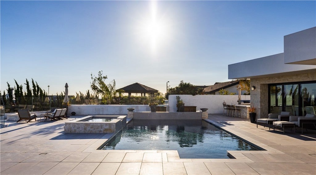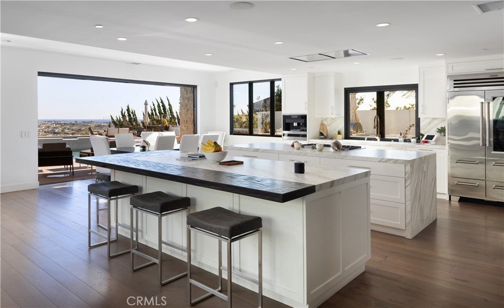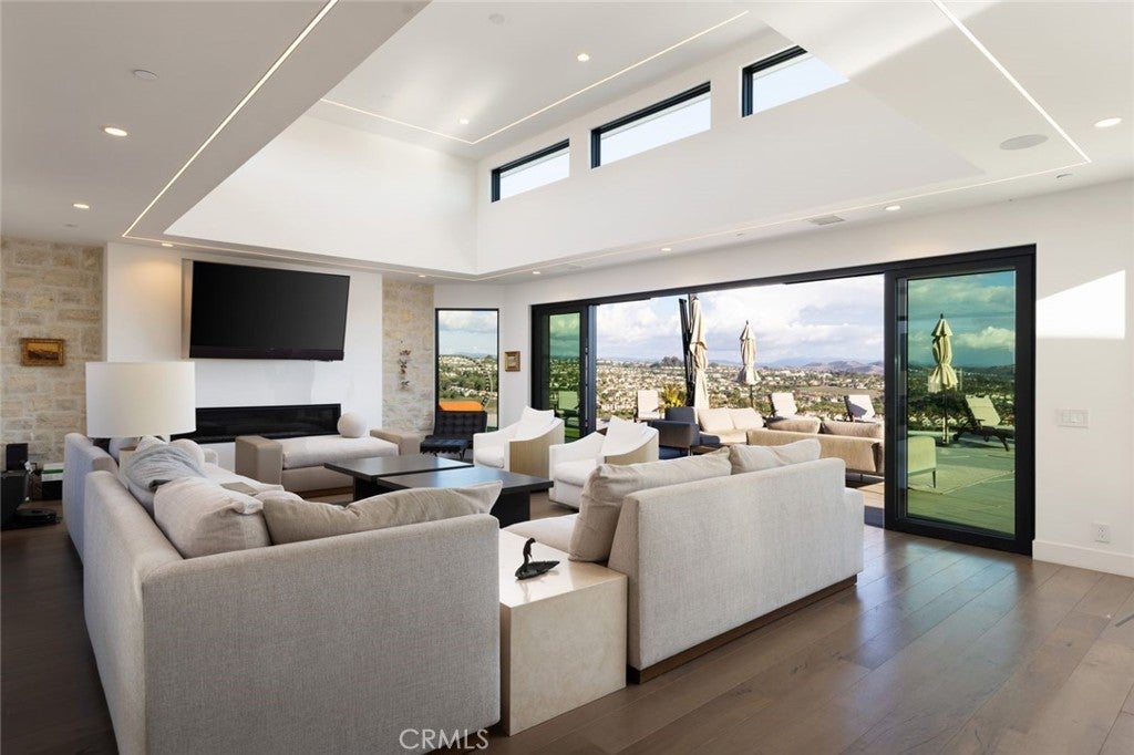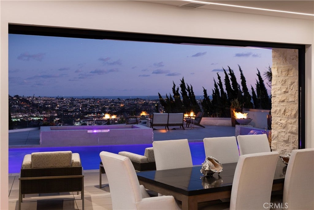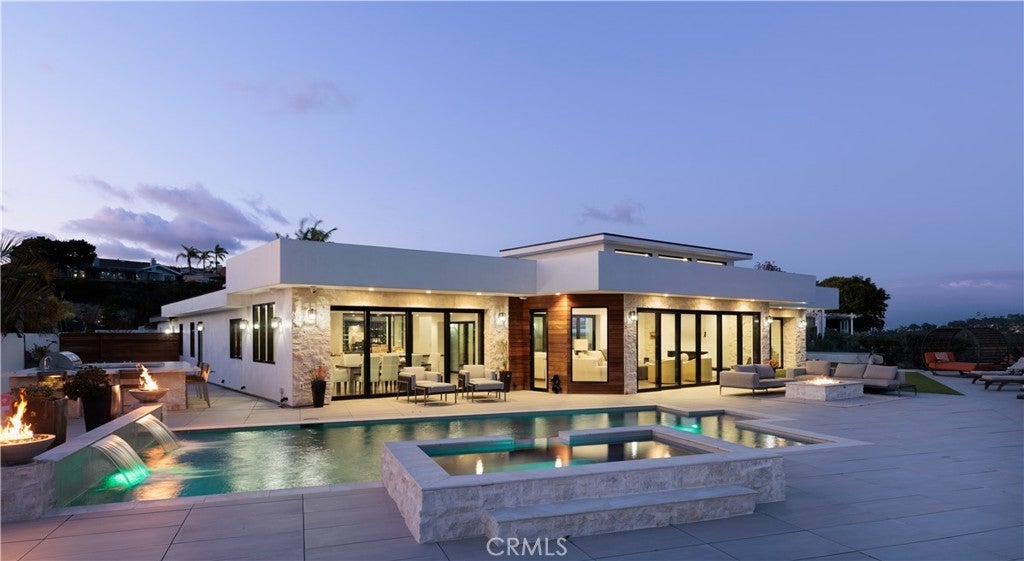 Experience sweeping panoramic ocean, mountain and golf course views from this fully remodeled, single-level contemporary home in the coveted Monarch Bay Terrace of Dana Point. Set on an expansive 25,840 sq ft lot, the property captures amazing sweeping coastline views from San Diego to Dana Point, along with dramatic mountain backdrops stretching to Saddleback Mountain. Nearly every major room is oriented to these rare, wide-angle sight lines, creating a coastal living experience that feels open, elevated, and endlessly scenic. Offering approximately 5,000 sq ft of refined living space, the home features four spacious en-suite bedrooms and 5.5 bathrooms. Reclaimed Hickory floors, three fireplaces, and seamless pocketing doors blur the line between indoors and out, welcoming ocean breezes and natural light throughout. The primary suite boasts some of the property’s most impressive vistas—wake up to morning ocean views from bed, unwind in the spa-inspired bathroom with steam shower, and enjoy a private outdoor shower and patio overlooking the coastline. Designed for both daily living and effortless entertaining, the chef’s kitchen is equipped with Sub-Zero refrigeration, a Miele built-in coffee maker, two dishwashers, a Wolf double oven and 6-burner cooktop, dual islands, and abundant prep and storage space. Additional interior amenities include a temperature-controlled wine cellar, indoor dog wash, full smart-home system, integrated security cameras, and an oversized three-car garage with dual EV chargers. The resort-style grounds maximize the home’s extraordinary exposures. A heated pool and spa, two ocean-view fire-pit lounges, an outdoor dining courtyard with fireplace and heaters, a built-in BBQ center, and a separate pool bathroom with shower all come together to frame the coastline and mountains from sunrise to sunset. Every outdoor space is crafted to showcase the home’s breathtaking surroundings. Located just minutes from world-class beaches, five-star resorts, golf, dining, and the revitalized Dana Point Harbor, this fully furnished residence offers an unparalleled blend of luxury, comfort, and iconic Southern California scenery. Pets considered upon submission.