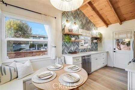 Seeking a beautifully furnished medium-term rental, available for 30 days or more, mere steps from the beach, a vibrant downtown area, and easily accessible major highways? Welcome to your ideal coastal retreat at 325 W Avenida Palizada. This newly renovated 3-bedroom, 1-bathroom home offers a comfortable coastal ambiance, both indoors and outdoors, in an ideal location to fully embrace San Clemente's offerings. You’ll also be a short drive from Disneyland, Lego Land, San Diego Zoo, and more! Upon arrival, you'll immediately appreciate the charm of this coastal cottage, embracing its original 1950s design. Step through the Dutch door into the spacious open-concept living room boasting a vaulted ceiling and a white-washed brick fireplace. The room features a generously sized sectional with a queen memory foam sleeper and a 65" smart TV. Abundant natural light streams through the large west-facing windows. The kitchen showcases stunning aquamarine herringbone tile walls, floating white oak shelves, and a suite of brand-new LG appliances (refrigerator, freestanding stove, dishwasher), complemented by a delightful built-in dining nook. Adjacent to the kitchen, an expansive enclosed front patio offers multiple seating areas and breathtaking sunset views. The bedrooms provide comfortable dimensions and a bright, airy coastal atmosphere, complete with window treatments offering blackout options. Bedroom one includes a queen bed, a large dresser, an armoire, and nightstands. Bedroom two features a full-size bed, dresser, nightstands, and a clothing rack. The third bedroom boasts beautiful French doors opening to the front of the property, a functional workspace with a stand-up desk, an in-unit washer/dryer, and additional storage. The bathroom showcases a walk-in shower, new vanity, and finishings. Stepping out through the back hallway or the third bedroom leads you to the spacious backyard adorned with local succulents and plants. Bask in the morning sun or evening warmth within the covered patio and seating area. Additional amenities include a second seating area with a fire pit, a Traeger smoker/BBQ. Surfboards included! Parking options include a long driveway with space for 2 vehicles and street parking.