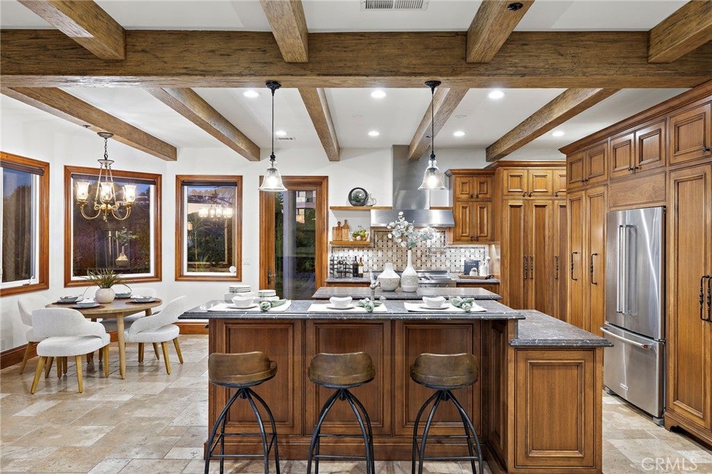 - Interior FeaturesBalcony, Beamed Ceilings, Eat-in Kitchen, Furnished, Open Floorplan, Pantry, Primary Suite, Recessed Lighting, Separate/Formal Dining Room