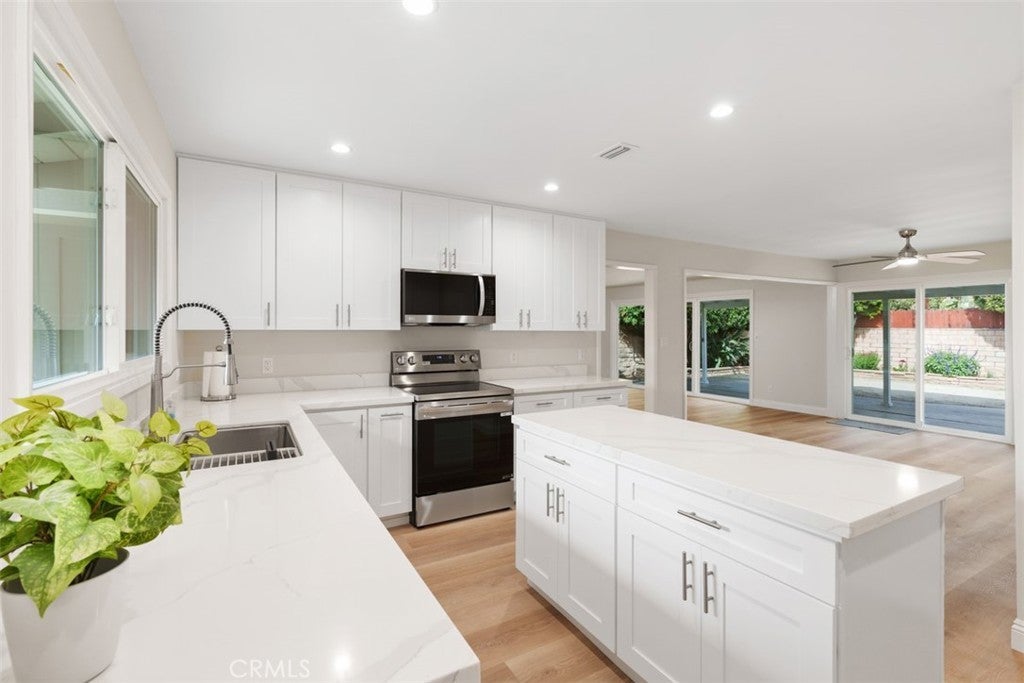 Now's your chance to hit a home run and score a great home! Move-in ready! Turn-Key! Beautiful, newly remodeled single level 3 BR / 2 Bathroom home on a large lot in a lovely neighborhood, featuring newly installed high-quality kitchen cabinets and counters, new electric range, new dishwasher, new microwave oven. New high-quality double-pane windows throughout, including two new sliding glass doors that open to a large back yard. Two completely remodeled bathrooms. New luxury vinyl plank flooring. Smooth ceilings and painted inside and out. New Heater/Furnace. Large lot (7,473 s.f. per assessor) featuring resurfaced driveway and large two car garage. Home is re-piped with copper. Back yard is spacious and also features a fenced area suitable for boat or vehicle storage with direct access. Conveniently located near many restaurants, shopping, schools, and activities! A gem of a property worth a visit! A place to call home and love!