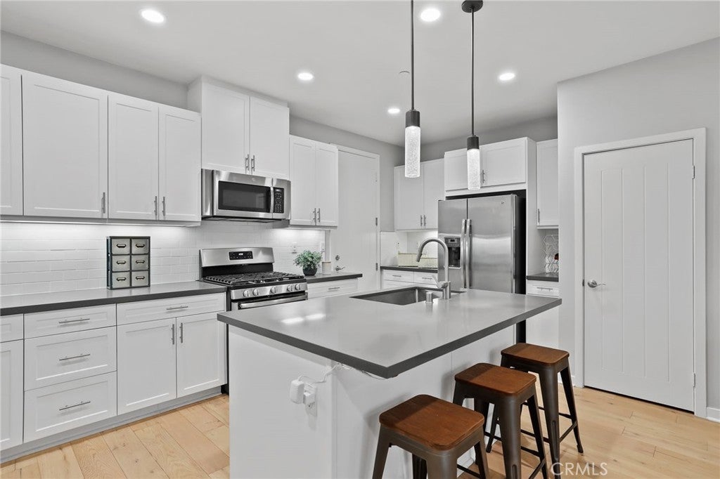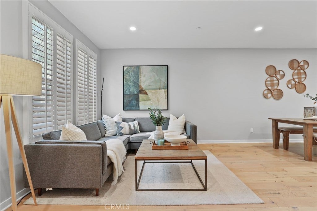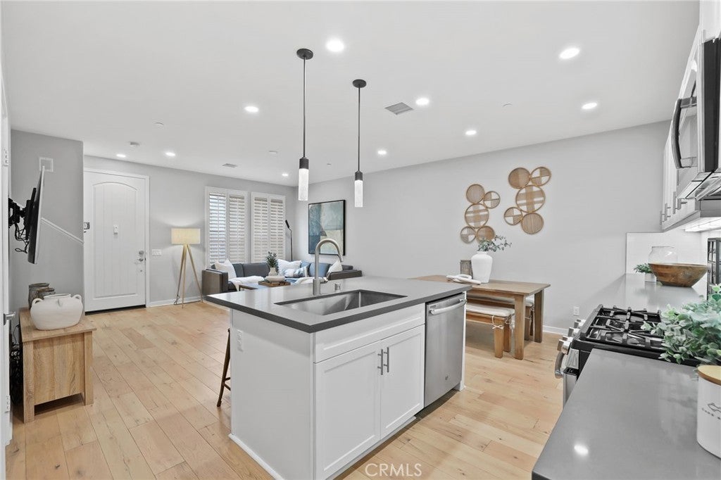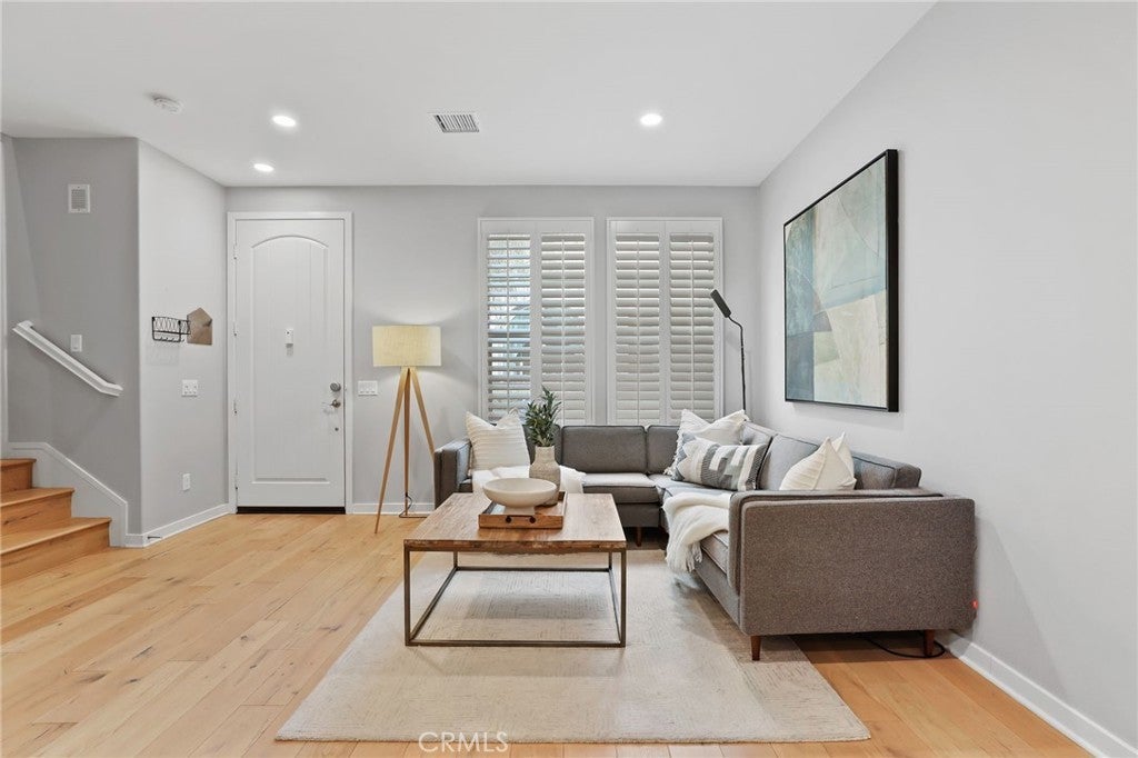 Offering a Warm and Organic Modern Vibe this Beautifully Designed Residence is Curated to be the Ultimate At Home Sanctuary. Located in the Resort-Style community of Baker Ranch and featuring 3 Bedrooms +2.5 Bathrooms this Stunning home has Everything Your Family Has Been Looking For and more! You are greeted with On Trend Wide Plank White Oak Hardwood Floors, Open Concept Great Room and a Light & Bright interior providing the perfect ambiance for your daily routine. The Gourmet Kitchen has been Upgraded Throughout and includes Stainless Steel Appliances, Gas Range, Upgraded Quartz Counter Tops, White Cabinets, Neutral Quartz Center Island, Mosaic Tile Backsplash, Water Softener, Pendant Light Fixtures, and Spacious Walk In Pantry. Upstairs you will find the Convenient Laundry Room, Two Full Bathrooms and Three Spacious Bedrooms. Ease yourself into a New Wellness Routine in your Light & Bright Primary Suite Retreat Upgraded with Plantation Shutters & Modern Ceiling Fan. Indulge in the Spa Like Primary Bathroom, featuring Upgraded Dual Vanities, Designer Tile, Spacious Walk In Closet, & Restorative Walk In Shower. Additional Features include a Charming Front Patio Surrounded By Lush Landscaping, NEW Tankless Water Heater, Spacious 2 Car Garage, Water Softener & Reverse Osmosis...The Elevated Location of this home enjoys easy walking distance access to Exclusive Resort Style Baker Ranch Amenities including 3 Swimming Pools, Tennis Courts, 8 Parks, Hiking and Biking Trails, Numerous Sports Courts, Dog Park, Clubhouse, etc..No Mello Roos and Low HOA... This One is Special...Do Not Wait To See it in Person!