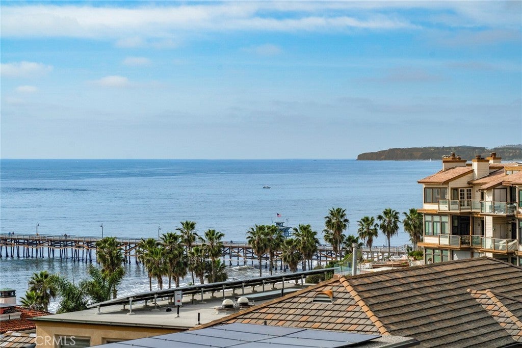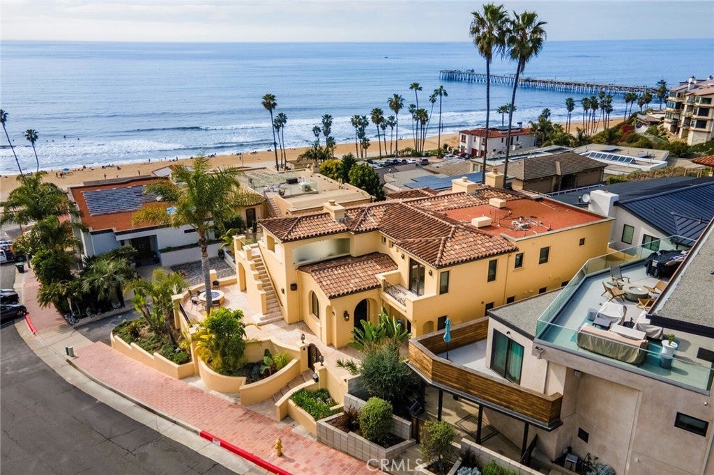 Just two homes from the ocean, this custom estate by architect Michael Luna showcases architectural refinement, superior craftsmanship, and coastal luxury. Engineered for longevity, it is supported by 42 caissons, ensuring a lasting foundation atop its coveted location. Overlooking T-Street Beach and the scenic beach trail, it offers breathtaking, unobstructed views of the Pacific, Catalina Island, and the San Clemente Pier—a front-row seat to golden sunsets and rolling waves. Beyond its gated entry, a travertine courtyard introduces the stately façade, where handcrafted ironwork, arched doorways, and Mediterranean details evoke timeless elegance. Inside, soaring ceilings, travertine flooring, and curated stonework are bathed in natural light from expansive windows and French doors. Designed to maximize panoramic views, this 4,035 square foot residence seamlessly blends indoor sophistication with exceptional outdoor living. Multiple ocean-facing terraces, both covered and open-air, offer a coastal experience from sunrise to sunset. The great room, anchored by a statement fireplace, extends onto a covered balcony with a fireplace and lounge seating, creating a tranquil retreat with endless ocean vistas. A separate terrace provides sunlit spaces for al fresco dining or unwinding to the sound of waves. At the heart of the home, the gourmet kitchen is a culinary haven featuring top-tier appliances, an oversized island, and custom cabinetry. Designed for effortless entertaining, it flows into the dining area and outdoor terraces, where ocean views create an unforgettable ambiance. Each of the five en-suite bedrooms is a private retreat showcasing bespoke finishes, custom millwork, and spa-like baths. The primary suite is the pinnacle of indulgence, positioned to capture sweeping ocean vistas. Step onto your private balcony, where salt air and rolling waves provide a serene escape. The spa-inspired bath features a soaking tub, steam shower, dual vanities, and a walk-in closet with custom built-ins. Amenities include a built-in surround sound system, dumbwaiter, whole house water filtration and three-car garage, ensuring comfort and convenience. Thoughtfully designed for coastal luxury, this residence is more than a home—it’s a sanctuary where indoor and outdoor spaces harmonize with the Pacific. Moments from San Clemente’s pier, Historic Del Mar, and miles of recreation, this estate is a rare opportunity to own a premier piece of California’s coastline.