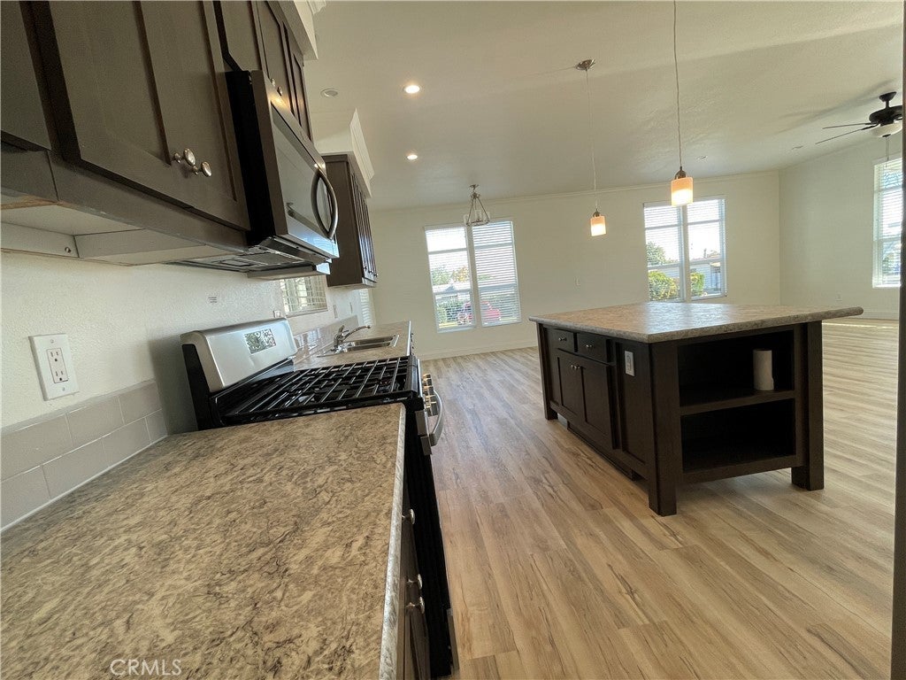Brand new 2023 Skyline home. 3bedroom 2 bathroom with 1300sq/ft living space. Appliances include stainless steel refrigerator, stainless steel range, stainless steel dishwasher, and stainless steel microwave with range hood. Master bedroom with walk in closet and ceiling fan, rectangular undermount sink with 4' granite backsplash and granite countertop, including linen cabinet. Pantry in kitchen, granite island with 2 overhang pendant lights, full height mosaic backsplash with stainless steel undermount sink. Ceiling fan in living room.