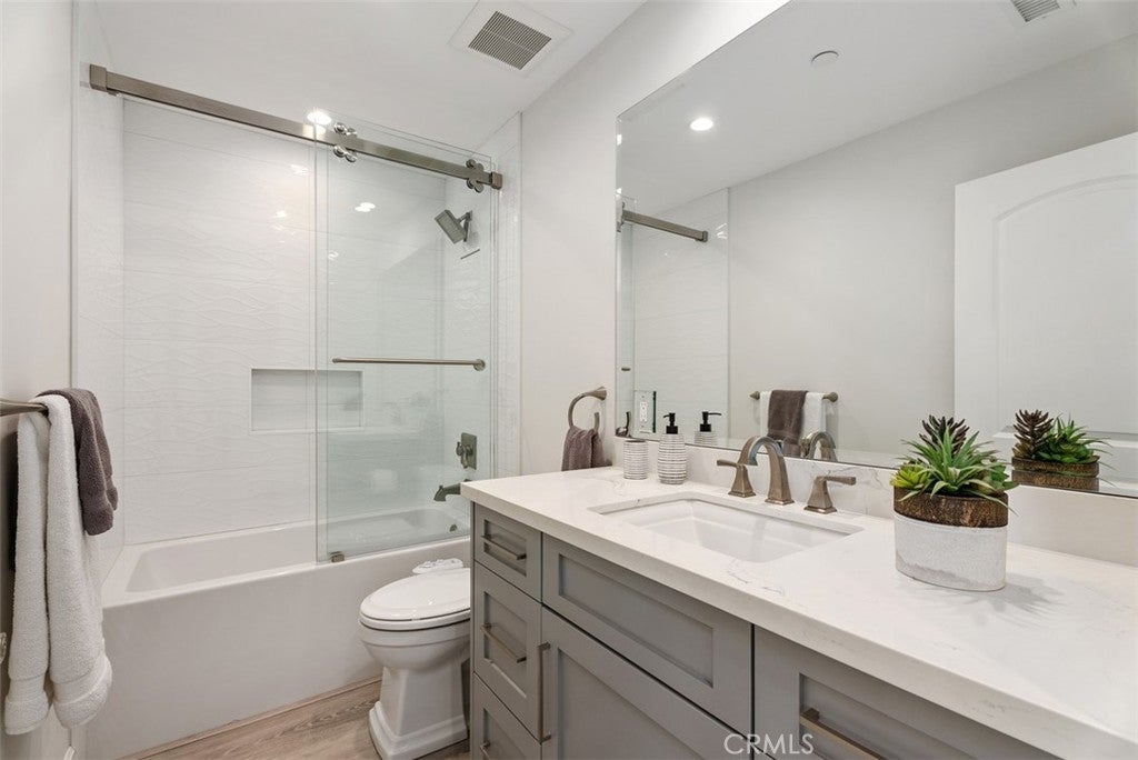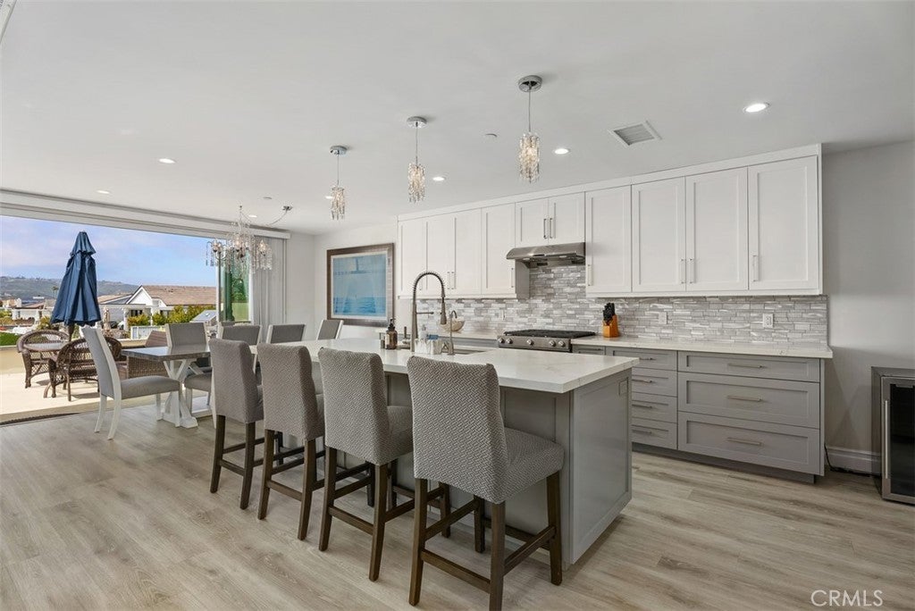 Catalina View is simply amazing from Master Bedroom, living room, dining room, kitchen and back patio area. No homes directly behind. This Two story townhome has a main floor bedroom and 3/4 shower. The primary bedroom is upstairs with incredible views of the Big Blue Pacific Ocean and Catalina Island. This wonderful furnished rental is still currently under Major Renovation. The kitchen is built for the gourmet cook. Huge center island perfect for entertaining. Two-toned Kitchen cabinets and eating area off kitchen and living room. This beauty was taken down to the studs. 240 amps should you need to charge your car. However, there is no charging station. Dutch front door, all new double pane windows. If you want new and a view, this is the rental for you!