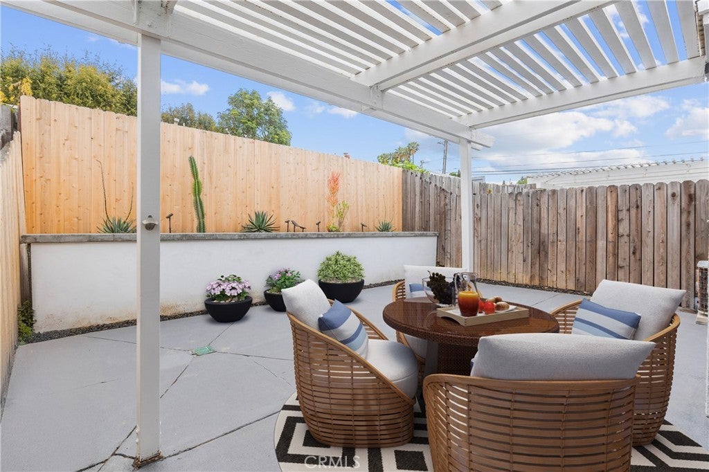 Welcome to the nicest two bedroom, one bathroom unit in this entire complex. This single-story home provides a comfortable and luxurious living space. The interior features a fully renovated, modern kitchen with HUGE quartz countertops and ample cabinetry. The ONLY unit with an open living room/kitchen area! Boasting new flooring that enhances the home's aesthetic appeal and ease of maintenance. Enjoy the convenience of an in-unit washer and dryer, as well as included appliances such as dishwasher, microwave, and range/oven. The condo also offers central forced-air heating and cooling, ensuring year-round comfort. Step outside to your private backyard with covered patio area, perfect for outdoor relaxation or entertaining guests. The community amenities include a pool and dog park. Walking distance are some great running trails and bike paths for endless outdoor activities. Conveniently located with quick access to freeways, this home is also near various shopping, dining, and entertainment options. The property includes a one-car garage, and reserved parking adding to the convenience and security of this delightful condo. Don't miss the opportunity to make this charming condo your new home!