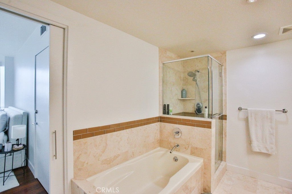 Seller to offer $15,000 seller concession Don't miss this highly coveted Plan D CORNER unit in the prestigious Marquee Towers. Offering 2 bedrooms, a versatile den (easily used as a 3rd bedroom), and floor-to-ceiling windows, this 6th-floor residence showcases breathtaking views and a sophisticated living experience. One of the few units with hardwood floors throughout, it also features remote blinds, bidets with fully customized fixtures and showerheads in the bathrooms, and a very private balcony. The unit is further enhanced by granite countertops, premium stainless steel appliances, and luxurious finishes in the bathrooms. Both AC units have been recently replaced for your comfort, and a reverse osmosis water filtration system adds an extra touch of convenience. Situated in the heart of Irvine, this ultra-modern high-rise offers an unparalleled array of amenities, including 24-hour gated security, concierge services, a resort-style lobby, coffee bar, lounge with a chef’s kitchen, conference room, movie theater, business center, billiard room, fitness center, heated pool, spa, outdoor BBQs, and a playground. Perfectly positioned near UCI, upscale shopping, fine dining, and Orange County’s stunning beaches, this home redefines convenience and style. With side-by-side parking and an HOA that covers internet, gas, water, and more—all with no Mello Roos fees—this is high-rise living at its finest. Schedule your private tour today!